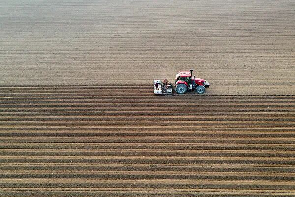 甘肃民勤,压沙现场。自走式压沙机往返作业,一行行整齐的稻草沙障很快将黄沙分割包围,随后无人机如“飞行侠”般将一粒粒载满绿色期望的草种播撒在沙漠上。一套作业动作精准流畅,因为始终有一双“眼睛”指引方向——这是北斗诸多应用场景中的寻常一幕。