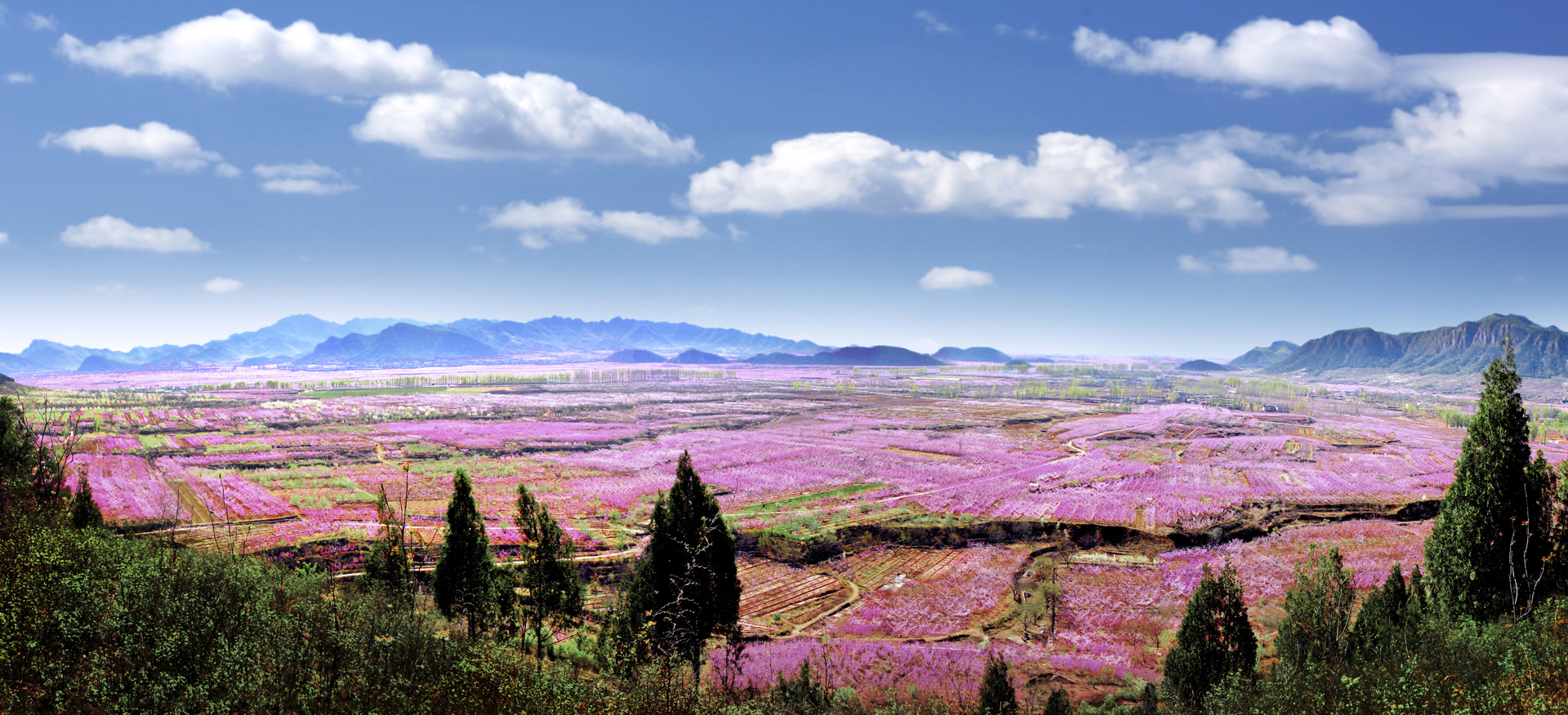 根据气象预测,平谷桃花4月6日进入始花期,先是平原,半山区、深山区次第开放。4月8日左右,山前暖带和平原区先开花,主要观赏景点有大岭前桃花观赏区、金海湖桃花观赏区、昌金路桃花观赏区;4月11日左右,半山区桃花开放,观赏景点有峪口桃花观赏区、小金山桃花观赏区、丫髻山桃花观赏区,4月15日深山区桃花开放,观景点主要在镇罗营桃花观赏区。平谷不止有桃花,清明假期前后,还有杏花、樱花、梨花、杜鹃花次第开放,可谓“百花争艳春意浓,踏青赏花正当时”。