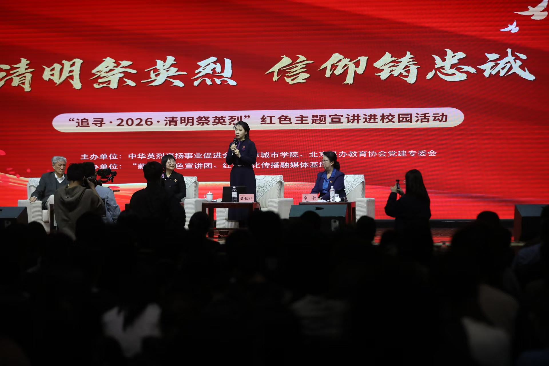 4月1日,中华英烈褒扬事业促进会与北京城市学院主办的“清明祭英烈、信仰铸忠诚”国防主题教育进校园活动,在北京城市学院航天城校区举行。活动以访谈与AI新媒体融合创新形式,邀请隐蔽战线英烈后代亲临现场,深度挖掘革命先辈潜伏斗争中鲜为人知的奋斗故事与精神传承细节,让“若一去不回,便一去不回”的革命精神走出屏幕深入人心。