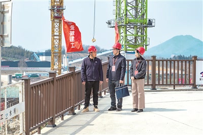 安徽省广德市纪委监委围绕贯彻落实党中央重大决策部署,紧盯重大水利工程项目前期决策、立项审批、招标投标、竣工验收等关键环节强化监督,护航项目建设廉洁高效。图为该市纪检监察干部在重点水利工程凤凰山水库枢纽工程建设现场了解情况。郑展鹏 摄
