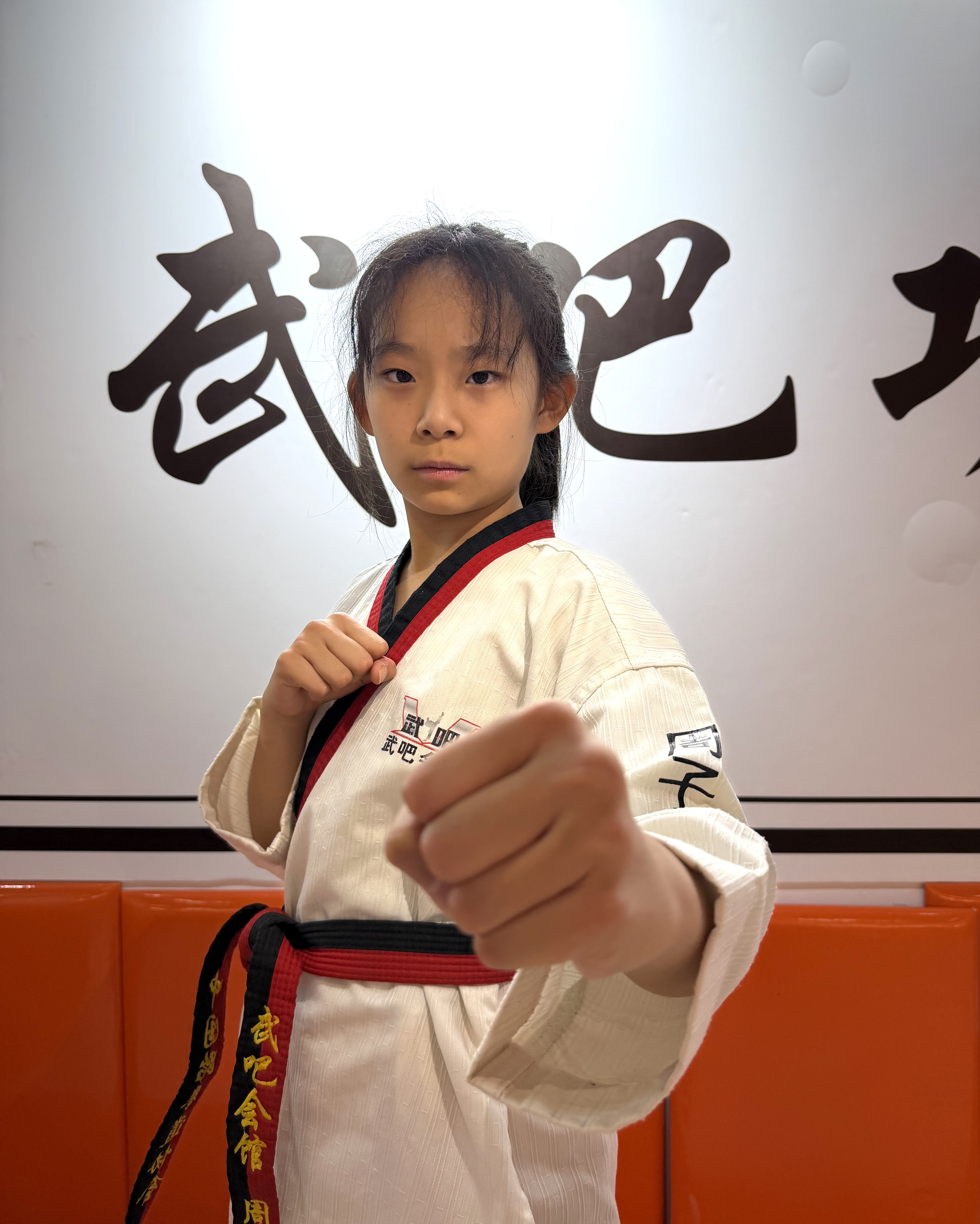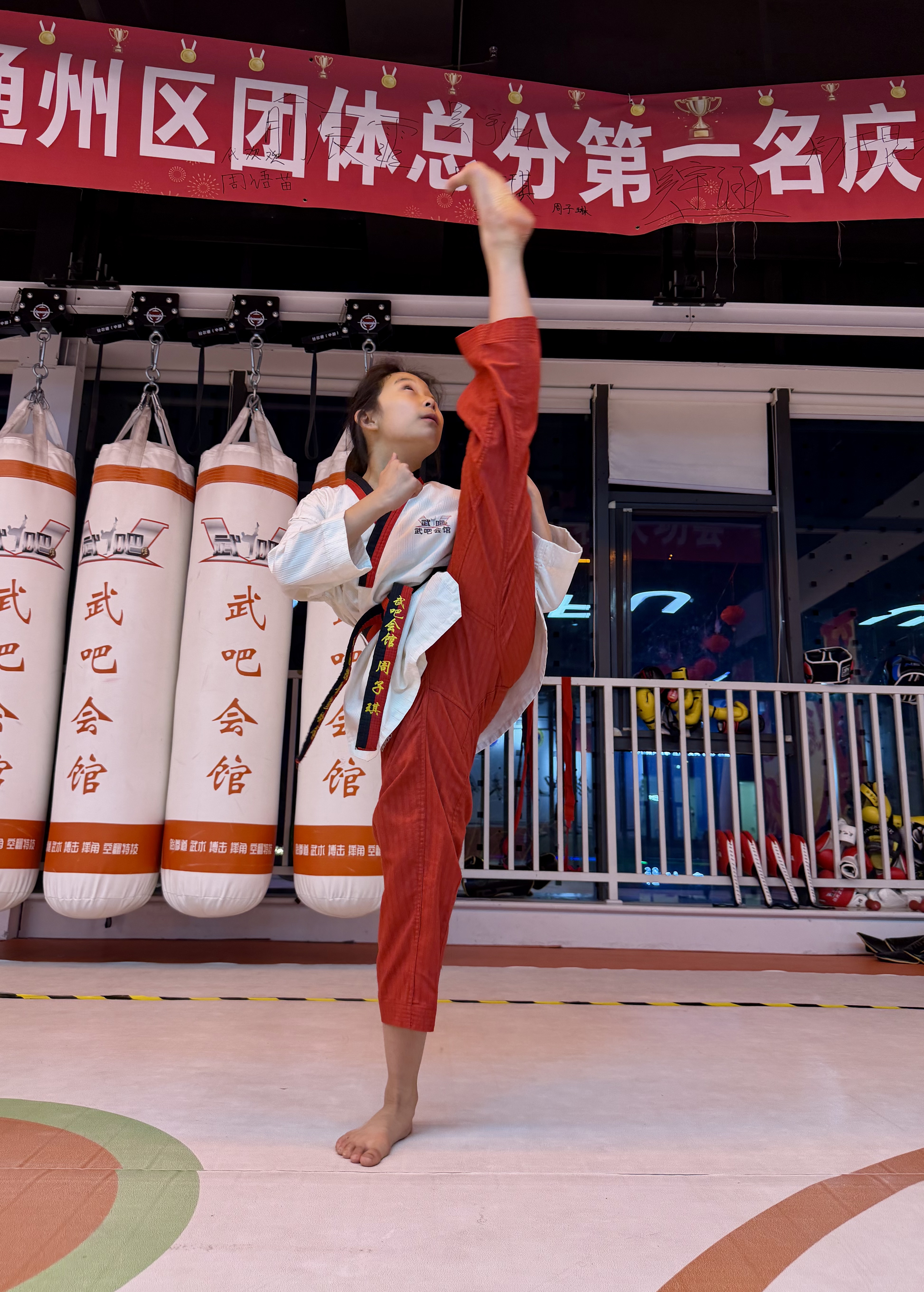 周子琪就读于北京教育科学研究院通州区第一实验小学,现在是一名六年级的小学生。5年前,她在妈妈的鼓励下开始学习跆拳道。“第一次来到道馆,看到大哥哥大姐姐会许多高难度动作,我特别羡慕。于是就下定决心,一定要把跆拳道学好。”