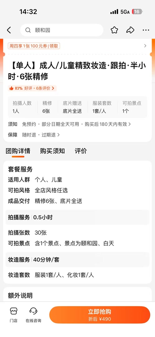 早在2023年,颐和园就曾公开表示,园内禁止跟拍的商业拍摄,也不允许携带反光板一类的设备。但记者在颐和园门外看到,地铁西苑站2公里内有约20户商家,明确表示可以提供颐和园商拍的服务,在网络平台的团购上还专门注明仅用于颐和园。在一家网络平台上,某商户上架的半小时含妆造的商拍团购,今年已经售出200余单。