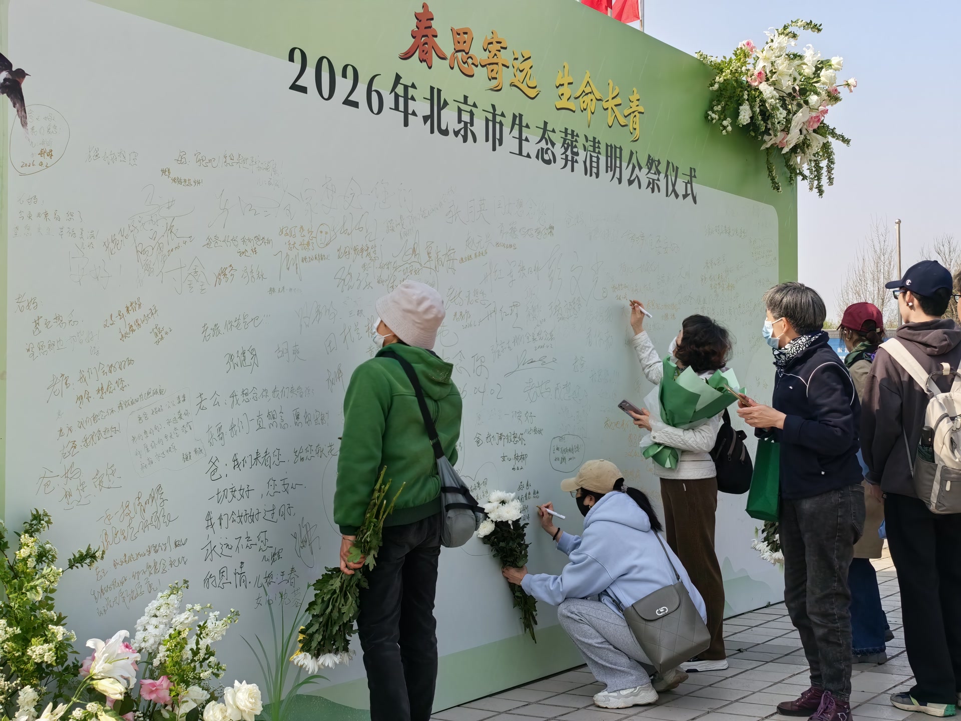 4月2日上午,北京长青生命纪念园内松柏含翠,生态葬纪念碑巍峨矗立。以“春思寄远,生命长青”为主题的2026年北京市生态葬清明公祭仪式在此举行,400余名生态葬逝者家属及社会各界群众参与,以庄重简约的方式追思亲人、礼赞生命。