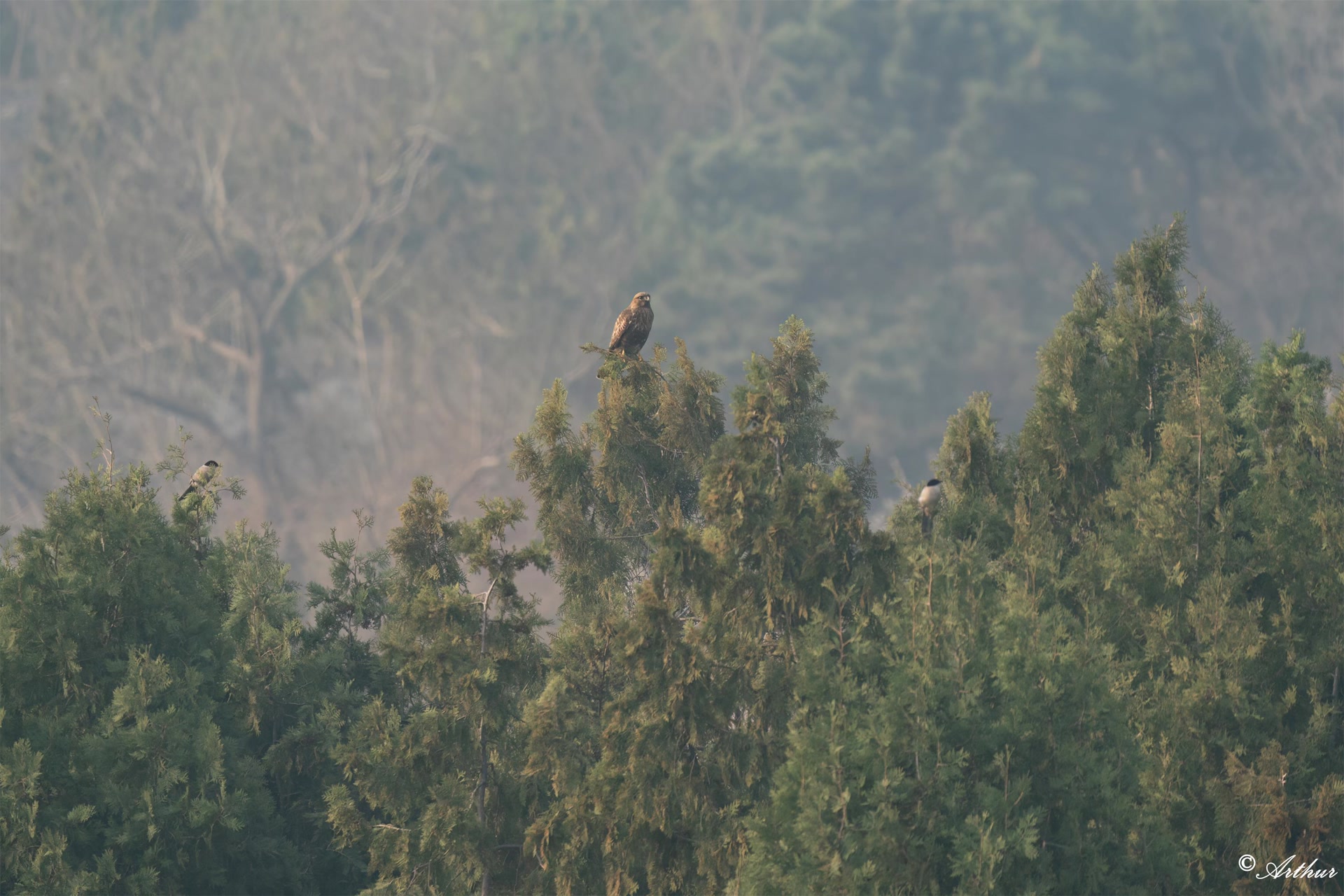 百望山是京西太行山最东端的一座山峰,这里视野开阔,山峦绵延起伏,沿着山脉的迎风坡形成了稳定、强烈的上升气流,这对翱翔中的猛禽来说,相当于提供了 “免费汽油”。同时,山上植被茂密,生物多样性丰富,食物资源充足,为迁徙路上的猛禽和林鸟们提供了充足的食物补给和理想的栖息环境。百望山也因此成为这条“空中高速”上的“第一哨站”。