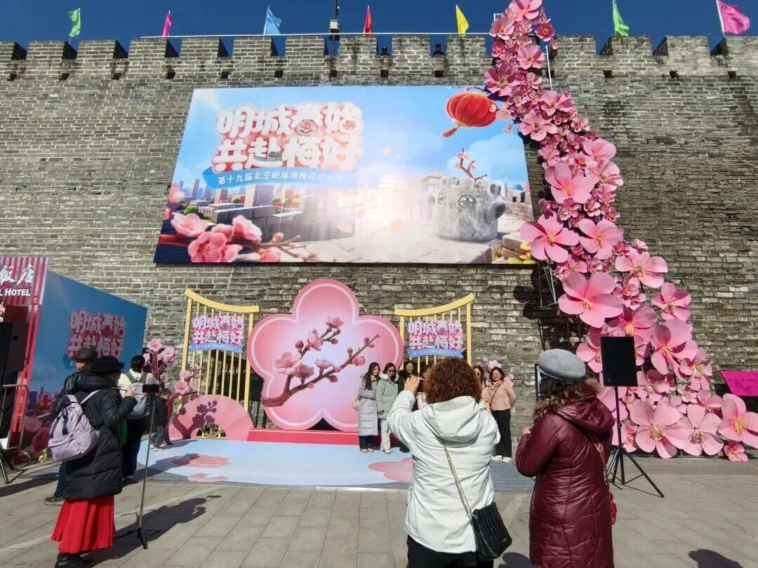 依托春日赏花契机,各区还积极推动文化、旅游、体育与商业多元融合。在东城区明城墙遗址公园的第十九届梅花文化节,气模梅花装饰与梅花瀑布景观,成了深受市民喜爱的热门“打卡”点,“梅好手作市集”则带来多种好物,让市民在古垣花海中感受春日诗意。