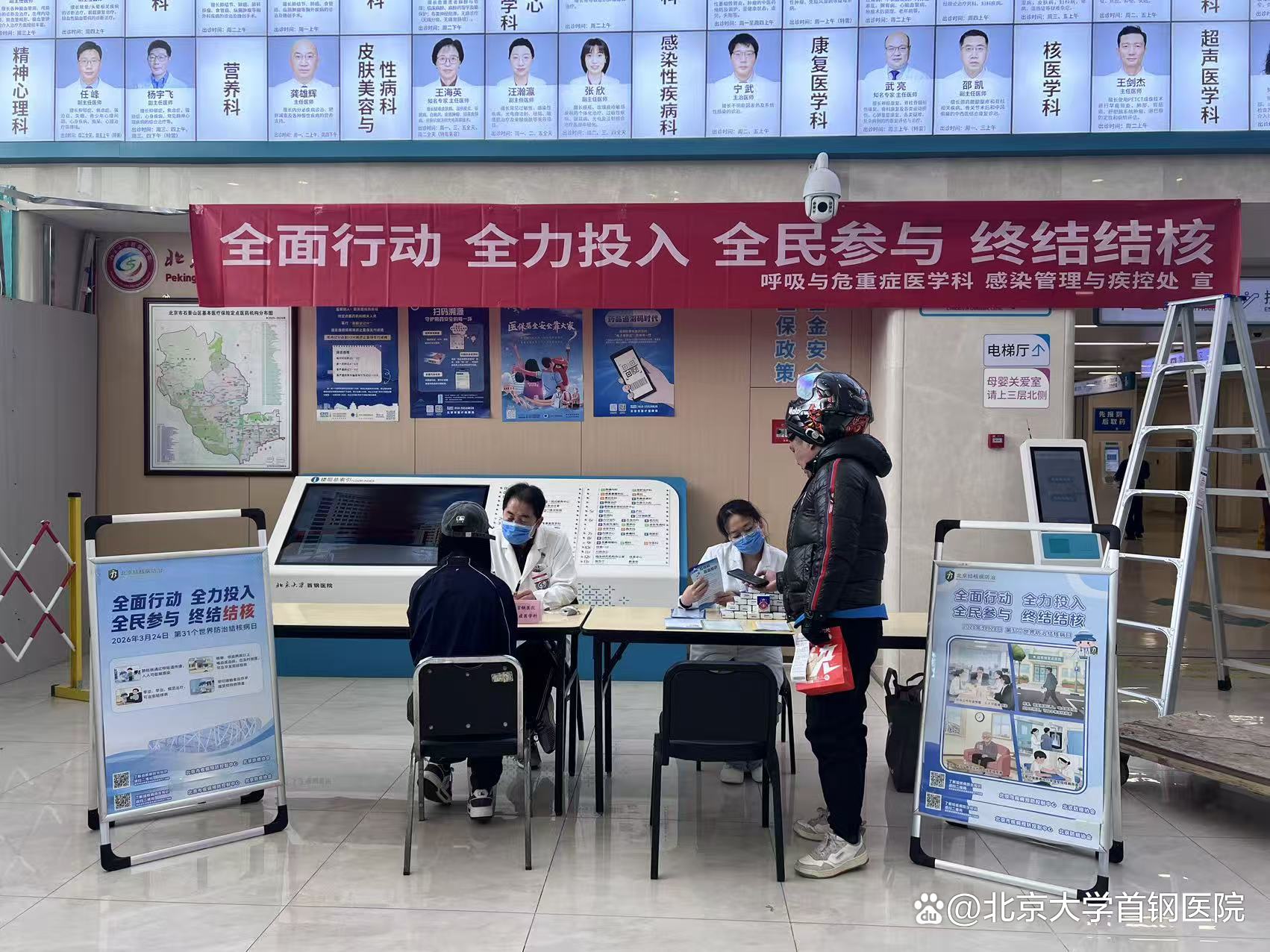 2026年3月24日,是第31个世界防治结核病日。今年的主题是“全面行动全力投入全民参与终结结核”。为了提高全社会对结核病防治的认知和关注,北京大学首钢医院感染管理与疾控处联合呼吸与危重症医学科、医事服务部,组织开展世界防治结核病日主题义诊活动,旨在普及结核病防治知识,倡导全民参与,共同终结结核病。