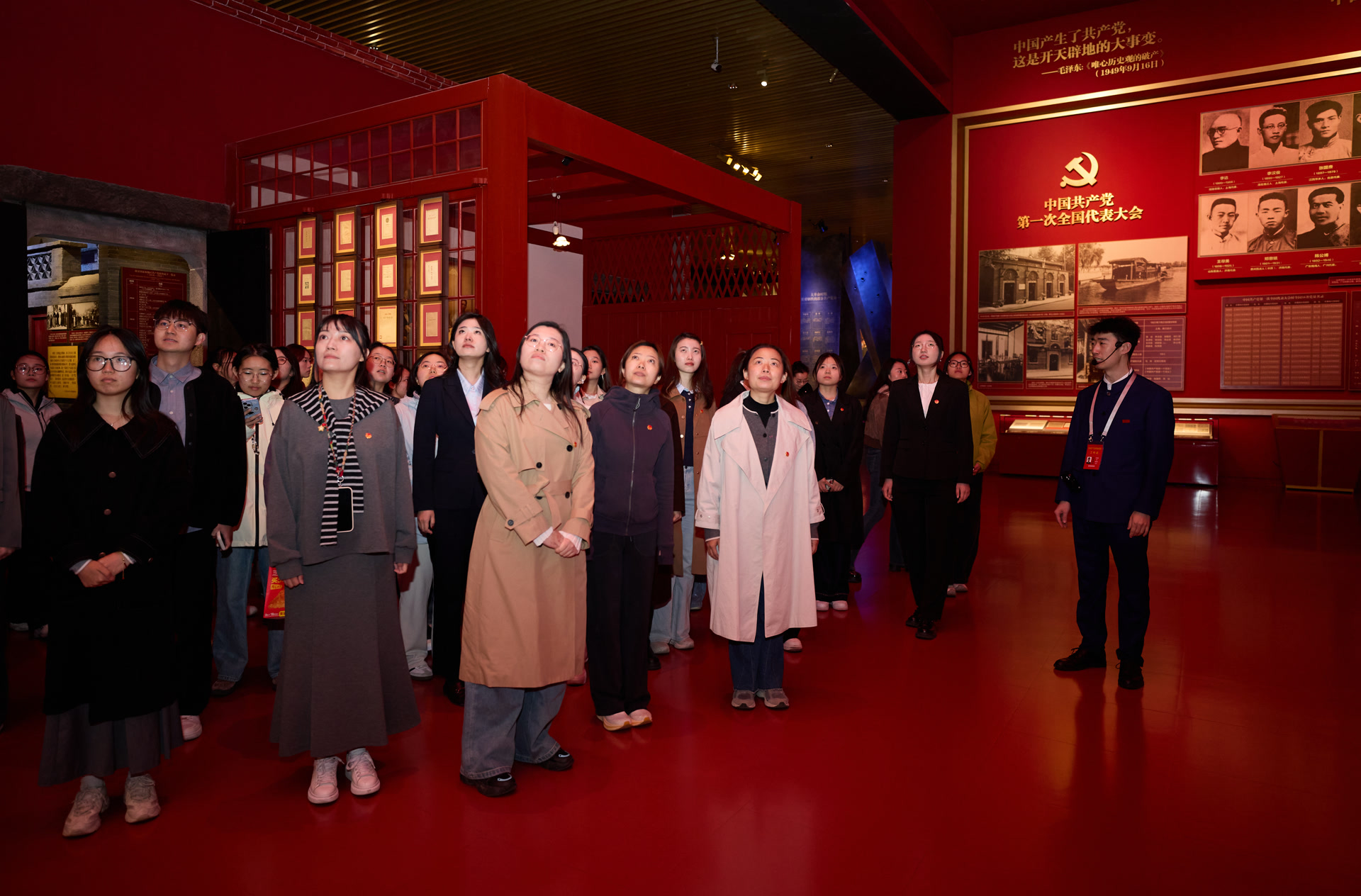 启动仪式后,学生们在讲解员的带领下走进党史展览馆参观学习,在长征等展区开展主题宣讲。在阶梯教室,老师结合展览元素和教学内容,组织学生交流分享。“这是一次深刻的红色精神洗礼。”对外经济贸易大学学生韩昀呈说,“从先烈身上,我感受到了赤诚的家国情怀和勇毅的奋斗精神,这将成为我今后学习成长的重要指引。”