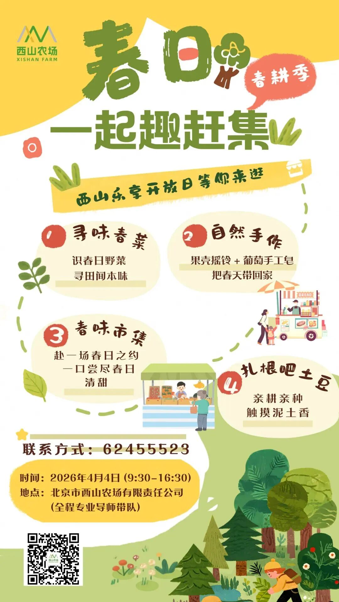 北京市西山农场 “春日一起趣赶集”春耕季系列活动将于4月4日正式拉开帷幕!作为年度农耕主题活动的“开场大戏”,这次我们把传统农耕、自然手作、科技农业和春日市集统统打包,为你呈现一场 “小而美”的春日盛宴。