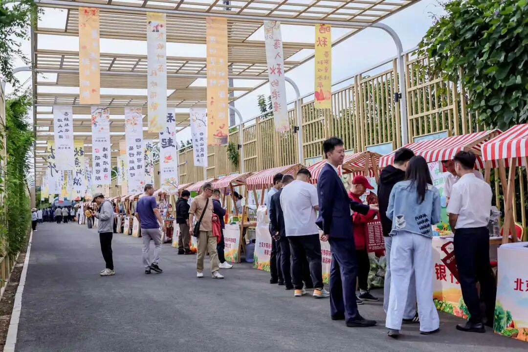 这里人头攒动,热闹非凡。农场直供的新鲜农品(草莓、蓝莓当天采摘享受九折优惠)、特色的春日小吃、充满巧思的原创文创好物……琳琅满目,让人目不暇接。