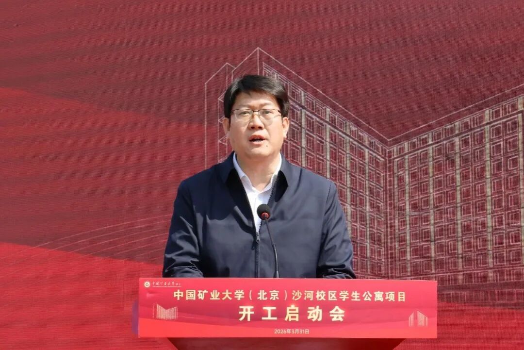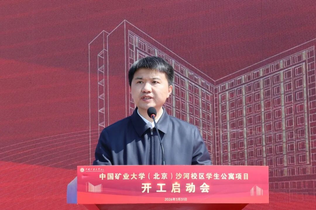 赵仕伟代表昌平区政府、北京未来科学城管委会致辞。他指出,中国矿业大学(北京)作为教育部直属全国重点大学,为国家能源领域与首都经济社会发展输送了大批优秀人才。学生公寓项目是改善办学条件、深化校城融合的重要举措,昌平区将持续优化服务保障,深化校地合作,支持学校科技成果转化与大学科技园建设,助力学校高质量发展。他希望参建各方严守质量安全底线,科学施工、规范管理,把项目建成标杆工程,为区域教育事业与“四区”建设贡献力量。