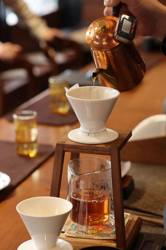 这里不仅有好喝的手冲咖啡,店主更创意地将手冲咖啡的技艺延伸到冲茶,因为没有专门的工具,还自行研发改造了烘焙机器、冲煮器具,将传统茶饮文化和新时代消费需求相结合。“原本是客人觉得一天咖啡摄入太多,想换成茶,没承想变成了我们店的特色,受到老店很多顾客的喜爱。”店主笑着说,特别推荐尝试店里的岩茶和单枞,在一般茶室要贵价的一壶,在这里只要一杯手冲的价格。