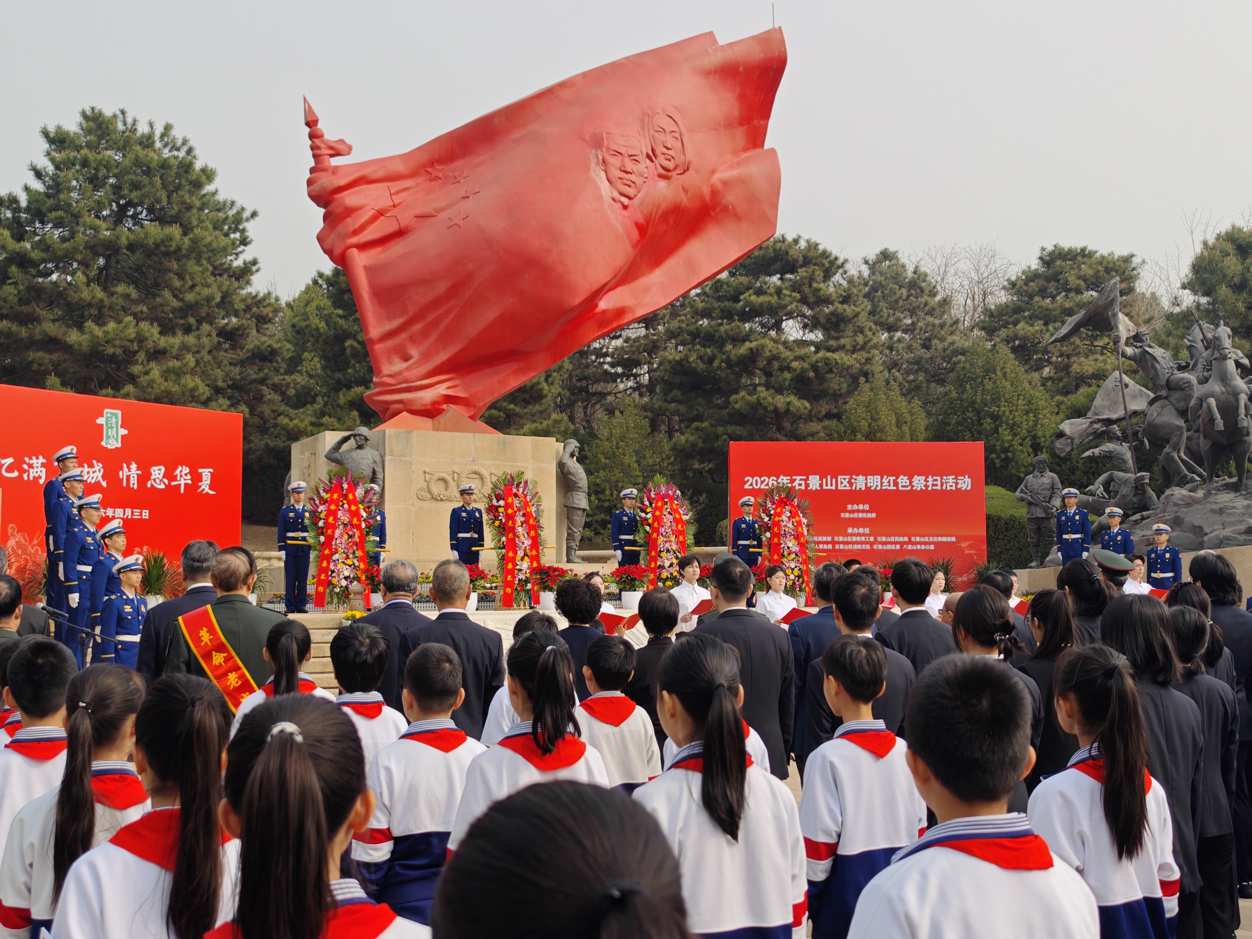 4月3日上午,“忆满京城、情思华夏”——2026年石景山区清明红色祭扫活动在八宝山革命公墓烈士纪念园广场举行。活动深切缅怀为民族独立、人民解放和国家富强英勇献身的革命先烈,赓续传承红色基因,凝聚奋进新征程的磅礴力量。