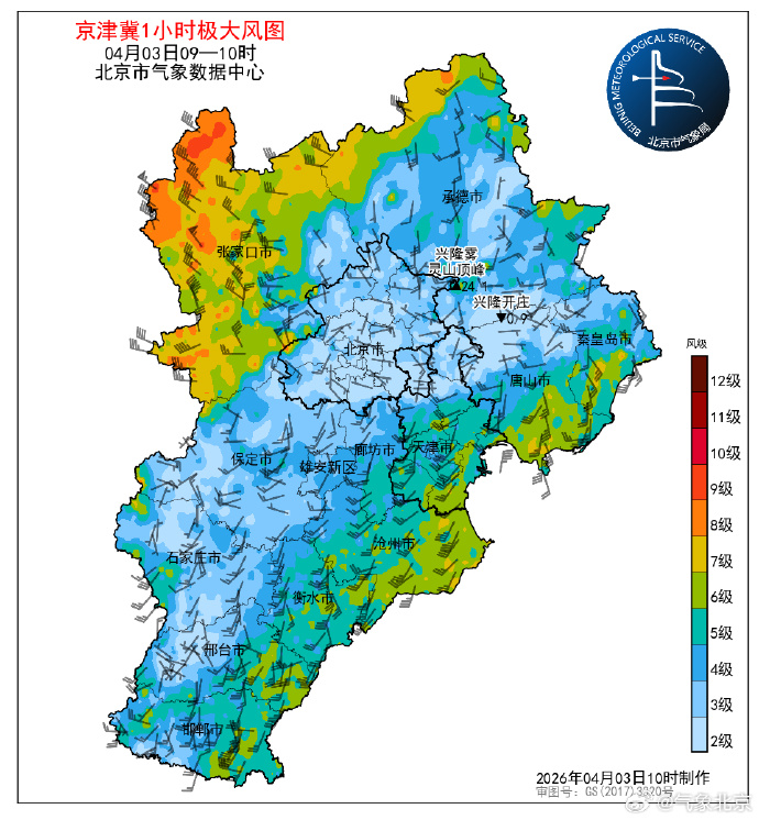 目前延庆地区有雷阵雨,截至10时15分,最大降雨量出现在延庆白草洼1.2毫米。此外,冷空气大风前沿已到河北张家口地区,阵风7—9级。