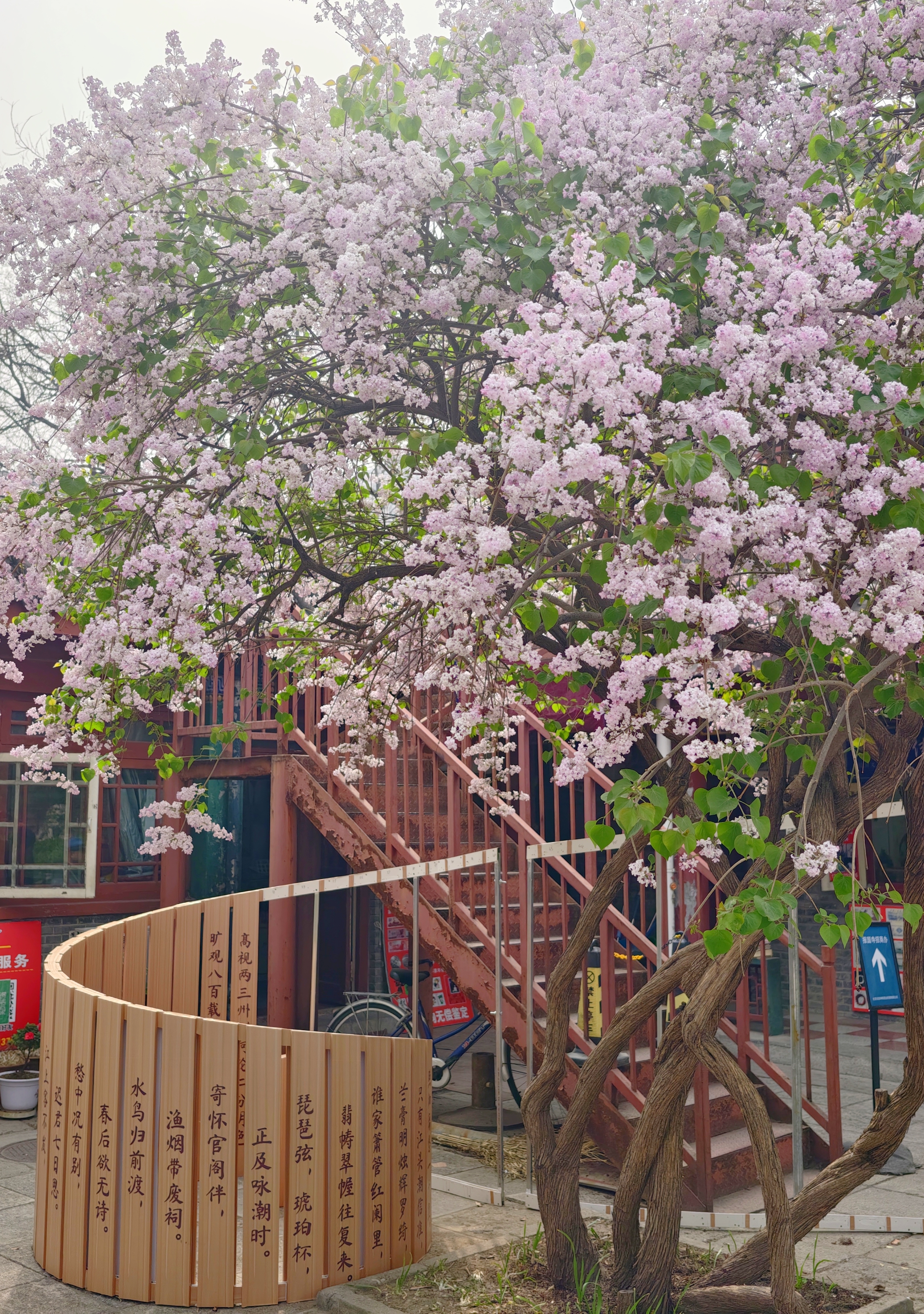 抬头是满树紫雾,低头是落英缤纷,连牌坊上的金字,都在花影里变得朦胧温柔,仿佛时光都慢了下来,只余花香与古意,在檐角轻轻流淌。
