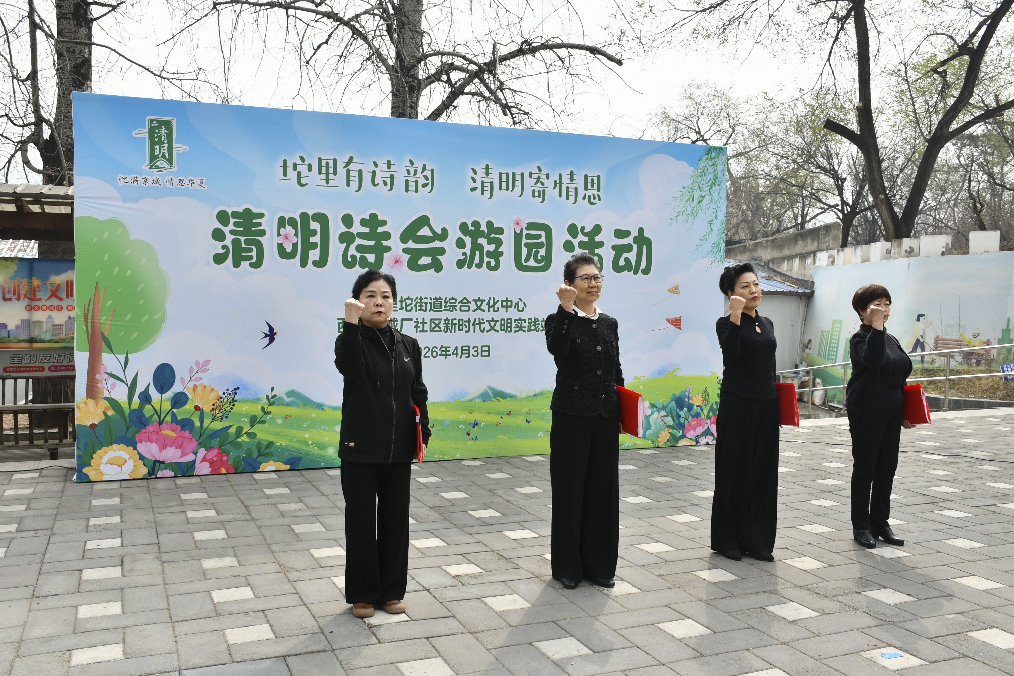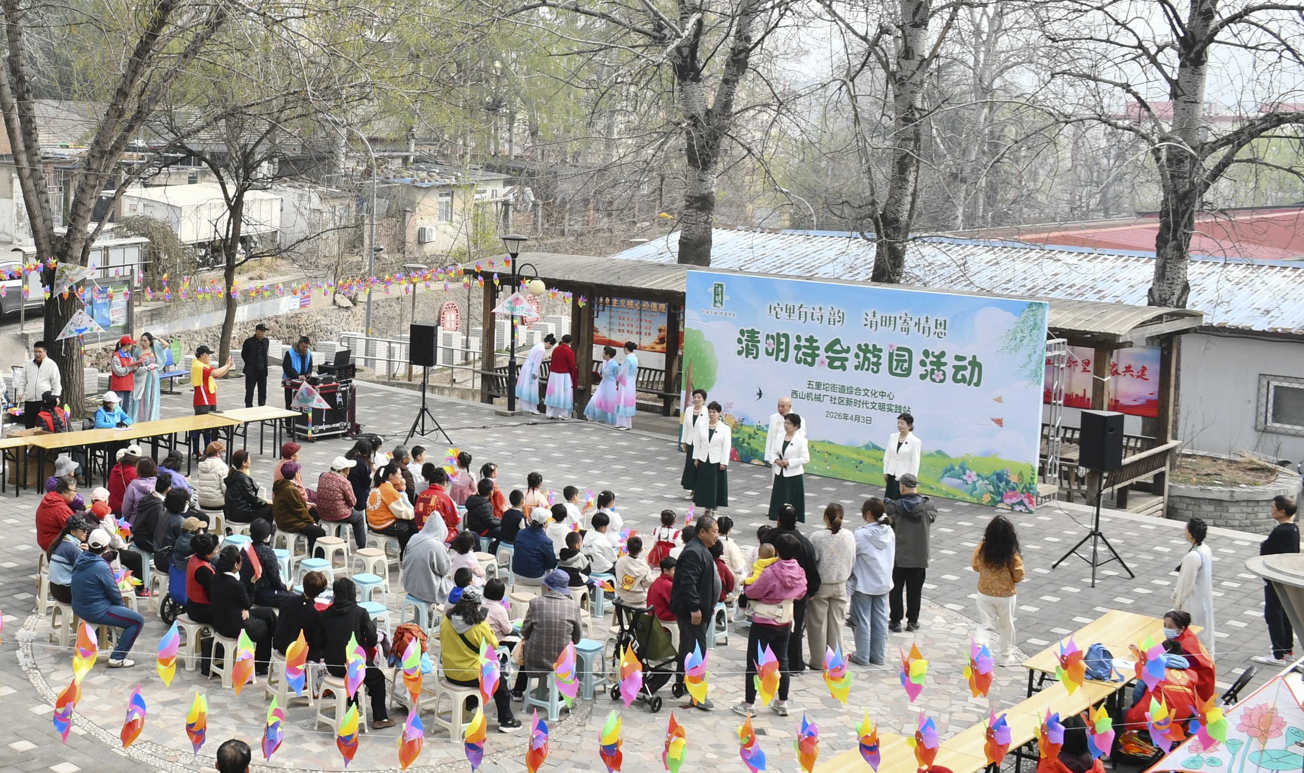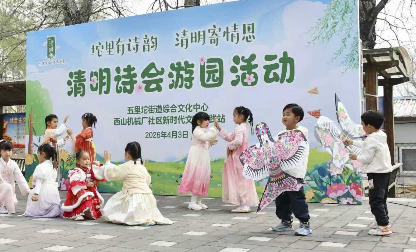 4月3日,石景山区五里坨街道综合文化中心、西山机械厂社区新时代文明实践站举办“坨里有诗韵 清明寄情思”清明诗会游园活动。活动在五里坨街道综合文化中心门口文化广场拉开帷幕,吸引了百余名居民群众驻足观看,现场诗韵悠扬,春意融融。