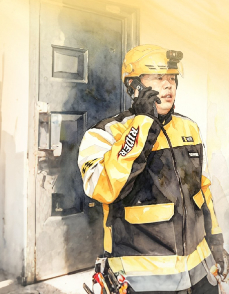 14时45分,新城家园。陈文林送餐至16层,电梯门打开的瞬间,一股刺鼻的异味扑面而来。按常理,他送完这单便可离开,但他在工地当过五年安全员的经历,让他对“不对劲”的气味格外敏感。他没有走。他敲开订餐住户的门,提醒对方赶紧下楼、不要用明火;他挨家挨户敲门,在楼道里大声叮嘱;他骑车到物业值班室,让工作人员报警。待消防队员赶到,排查出“液化气罐连接不规范”的隐患,检测数据显示“燃气浓度已达危险阈值”。见现场已有妥善处理,他才放心离开,继续送完手上剩下的订单。
