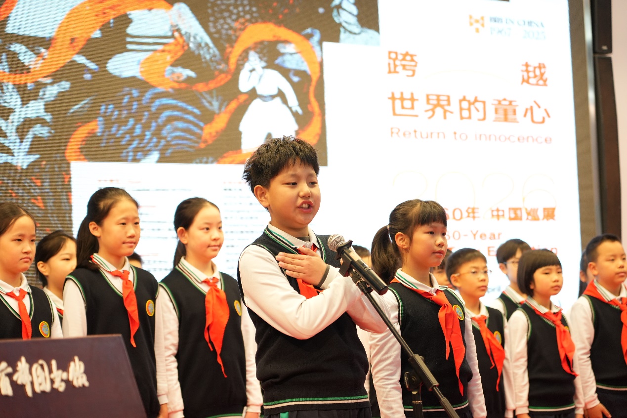 开幕现场,北京朝阳区垂杨柳中心小学学生带来了配乐诗朗诵《种下故事,静待花开》,用清澈童声传递阅读的力量,邀请现场观众共同成为“一名神奇故事的播种人——播撒文字,培育画面,收获惊喜,浇灌想象。”