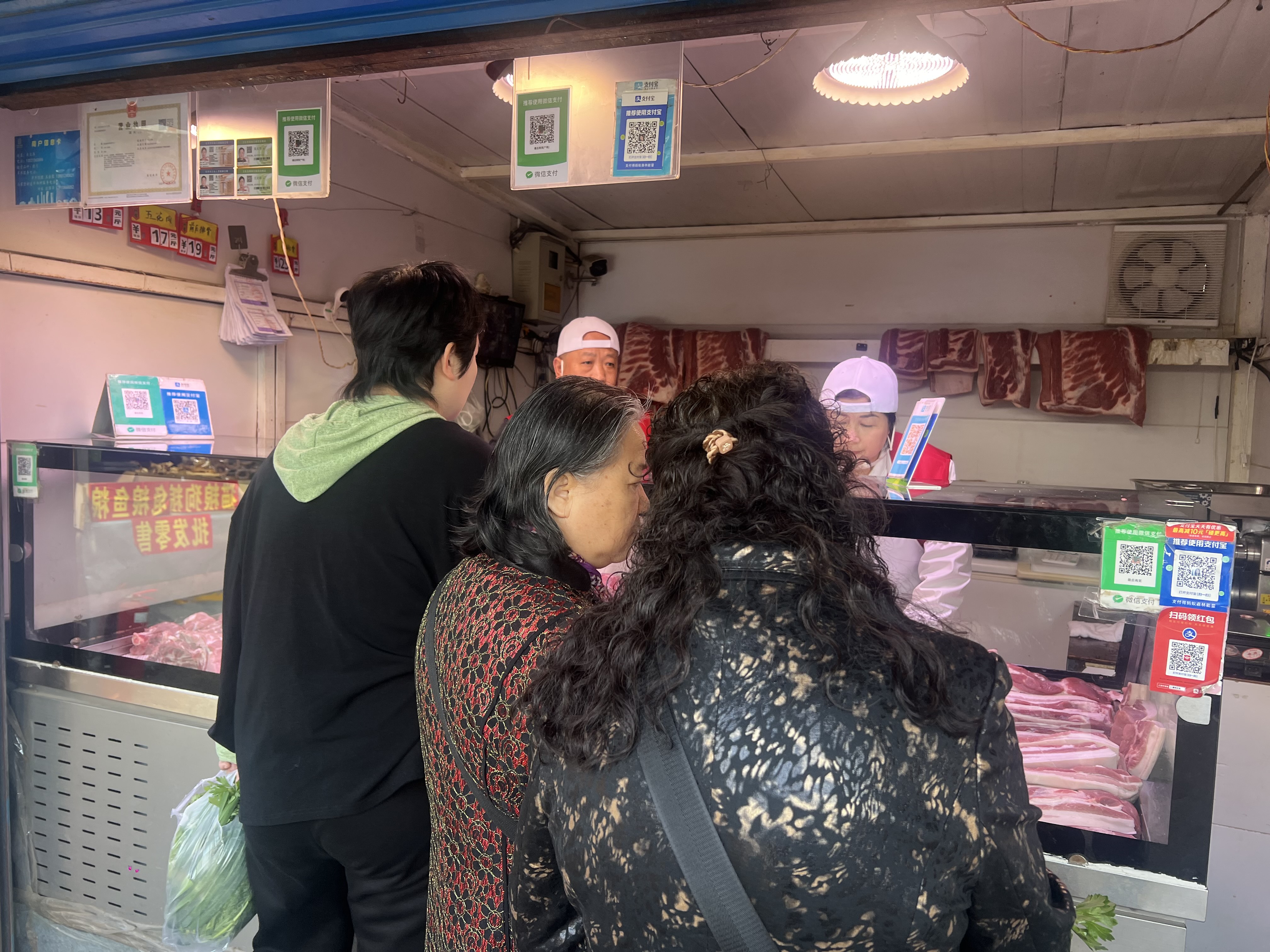 早上8点半,马家堡早市的猪肉摊前围满了人。店家边切肉边说:“比之前是降了,但降得不多。”这里前臀尖肉13元/斤、五花肉17元/斤、前后排骨19元/斤。“比春节那会儿降了一两块,我几乎天天买,有印象。”一位正在挑选五花肉的阿姨说。