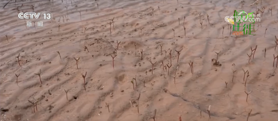 头上盘旋着黑嘴鸥,脚下密布着螃蟹的洞穴。记者现在就跟随着科研人员的脚步,一起深入到保护区滩涂的深处。在脚下这片就是刚刚补植过的盐地碱蓬的幼苗。科研人员将会对它们的生长状况进行监测,为后续的修复工作把准方向。