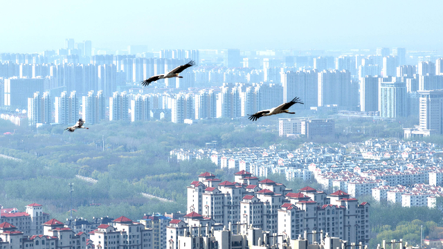 4月2日,十余只东方白鹳,不断在滨州城区上空盘旋,引得市民纷纷拿起手机拍摄。东方白鹳是一种大型涉禽,因其稀有性被誉为“鸟中大熊猫”,是中国国家一级重点保护野生动物,并被《世界自然保护联盟濒危物种红色名录》列为濒危(EN)等级。