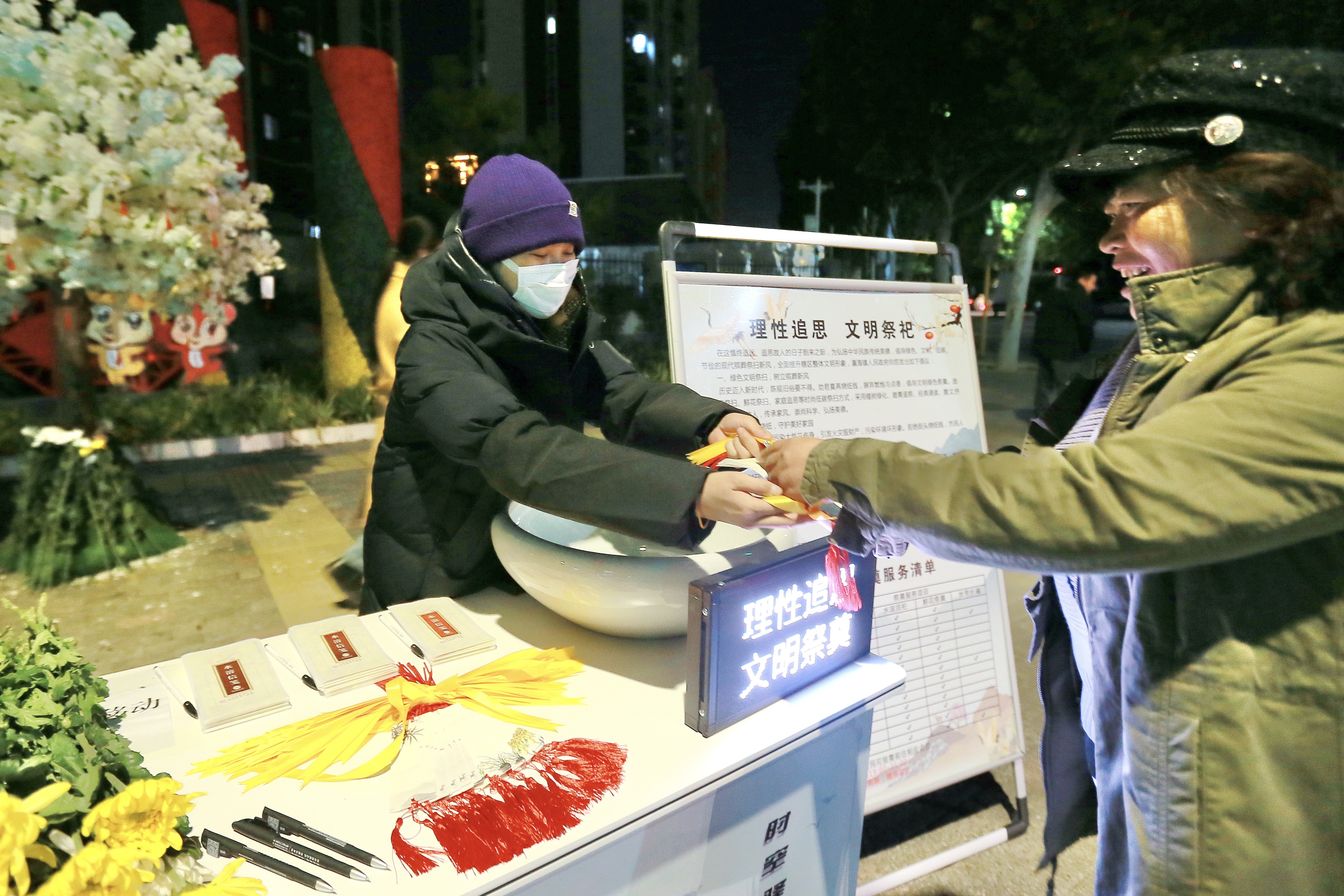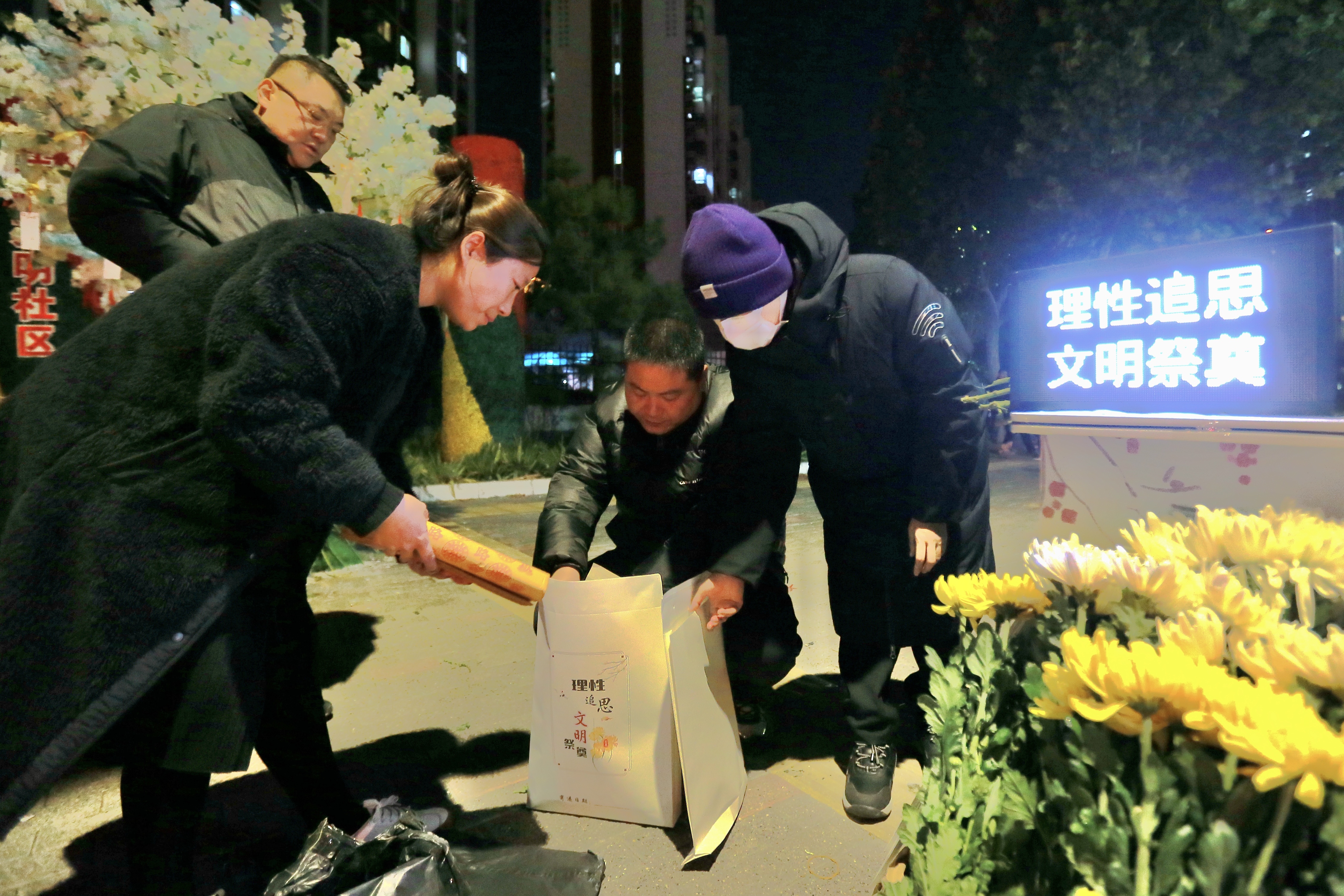 同时,设立传统焚烧祭祀用品回收点,对居民带来的纸钱等物品进行统一回收处理;邀请居民签署《文明祭扫倡议书》,围绕清明文化、防火安全、文明祭扫等内容开展趣味知识问答,参与者均可获赠鲜花,以互动形式让文明祭扫理念入脑入心。