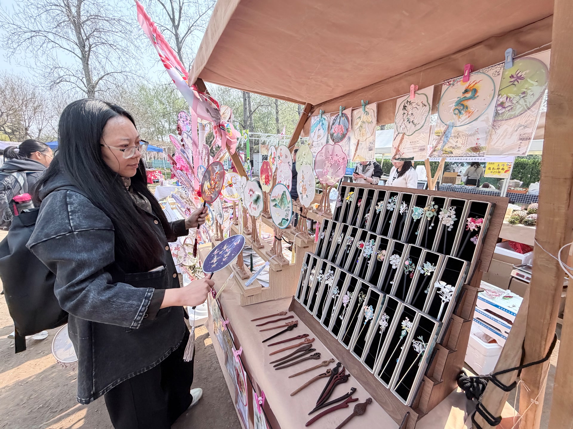 在国风运动会和非遗文化体验活动上,游客可用“花币”参与踢毽子、两人三足、抖空竹、蹴鞠、木射、捶丸、投壶、活字印刷、木雕花灯、团扇手绘、纺织等项目。汉风市集汇聚了40多个商家,还有卖花郎沿街叫卖,带来原汁原味的花朝体验。