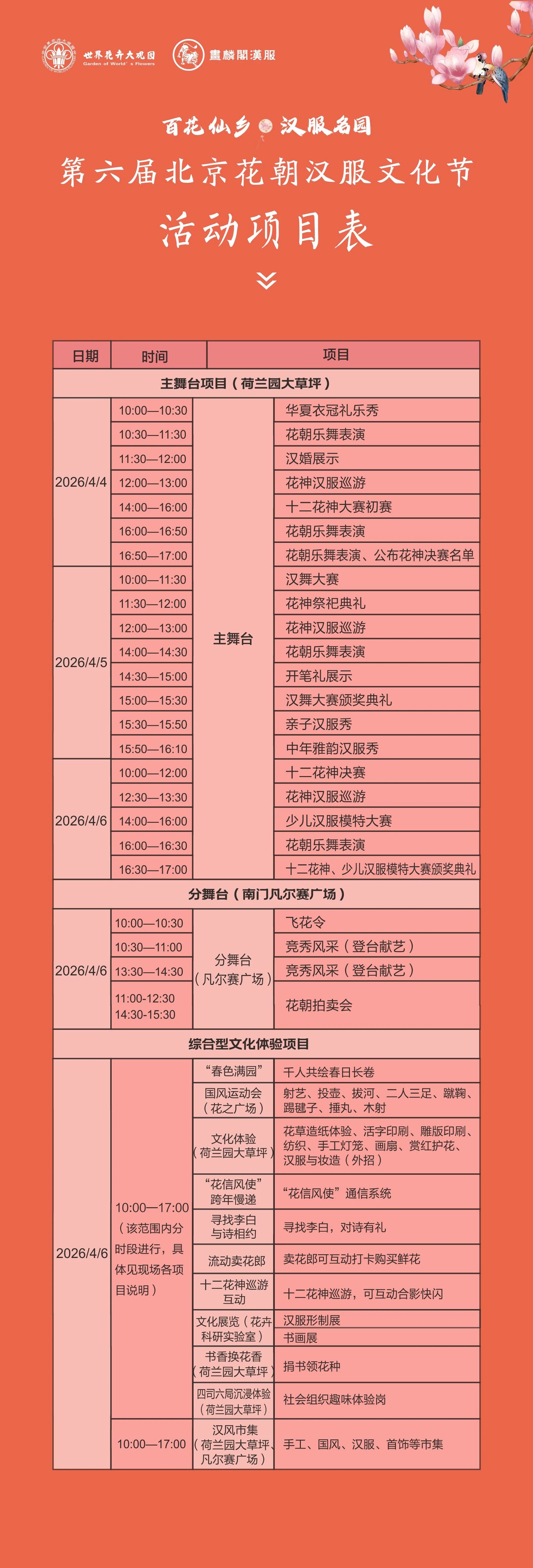 据悉,世界花卉大观园今年已经是第六年举办花朝节活动,让它变成了北京春天里一个“去体验”的盛大节日,此前的五届活动已经吸引了近30万市民参与。