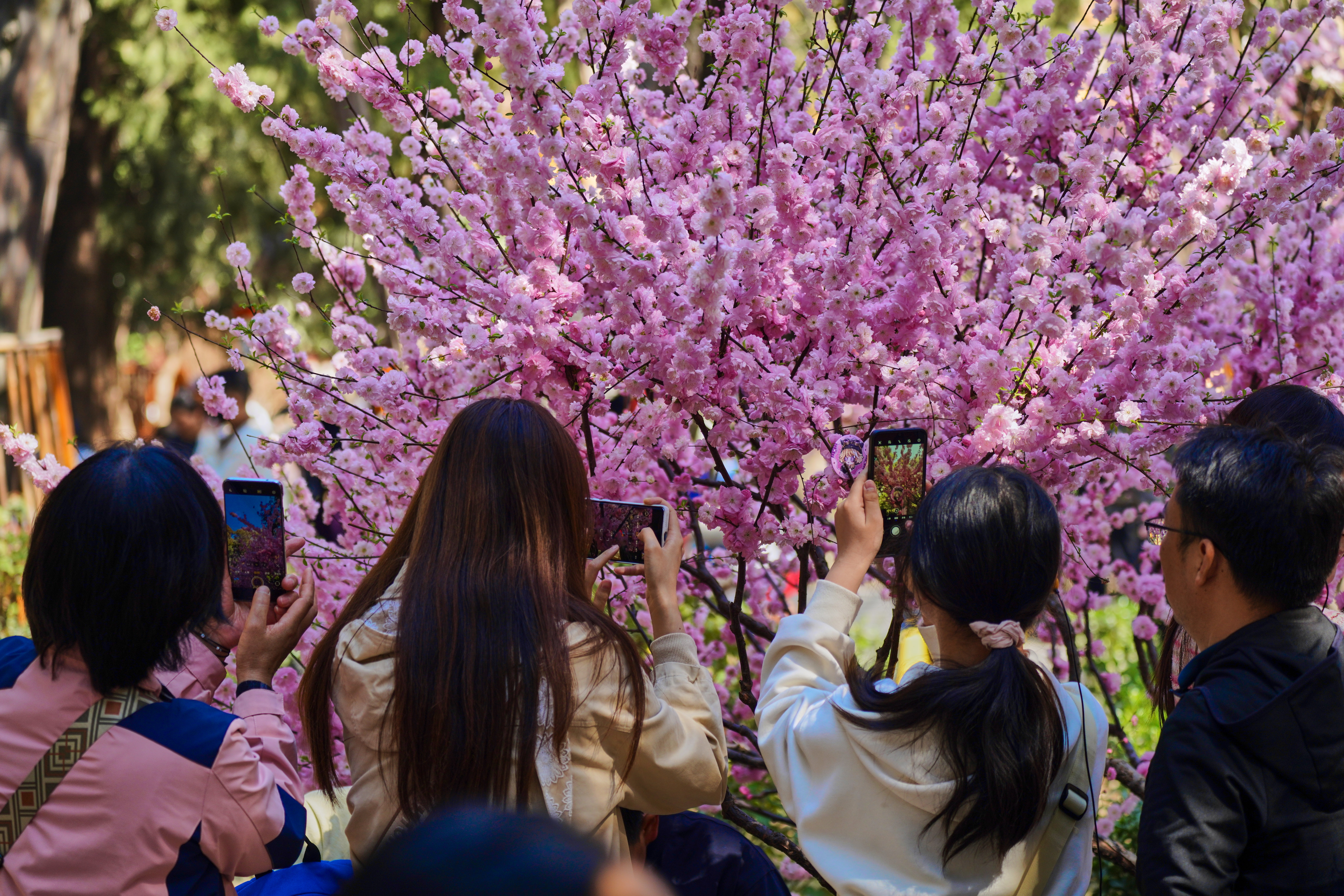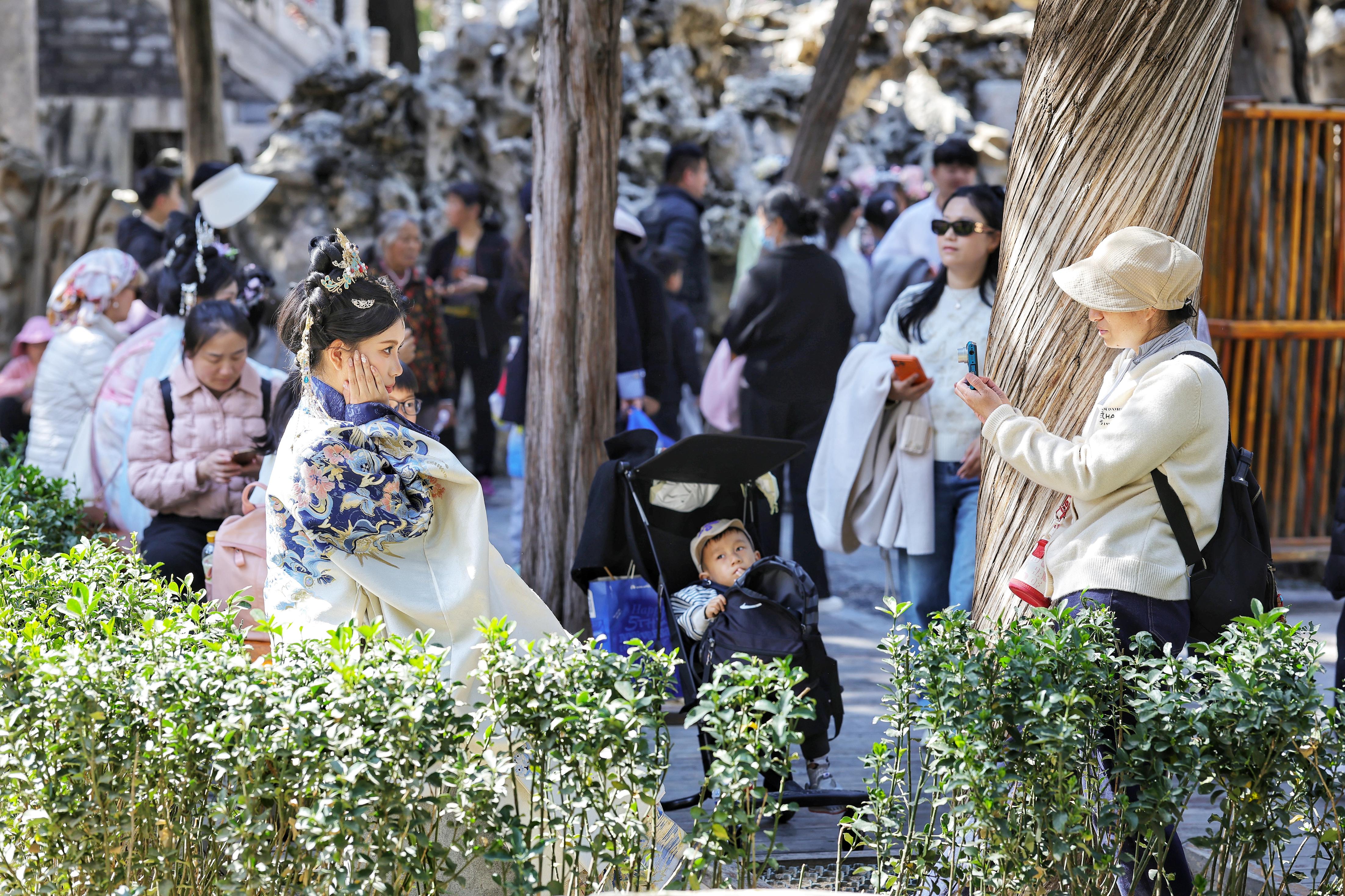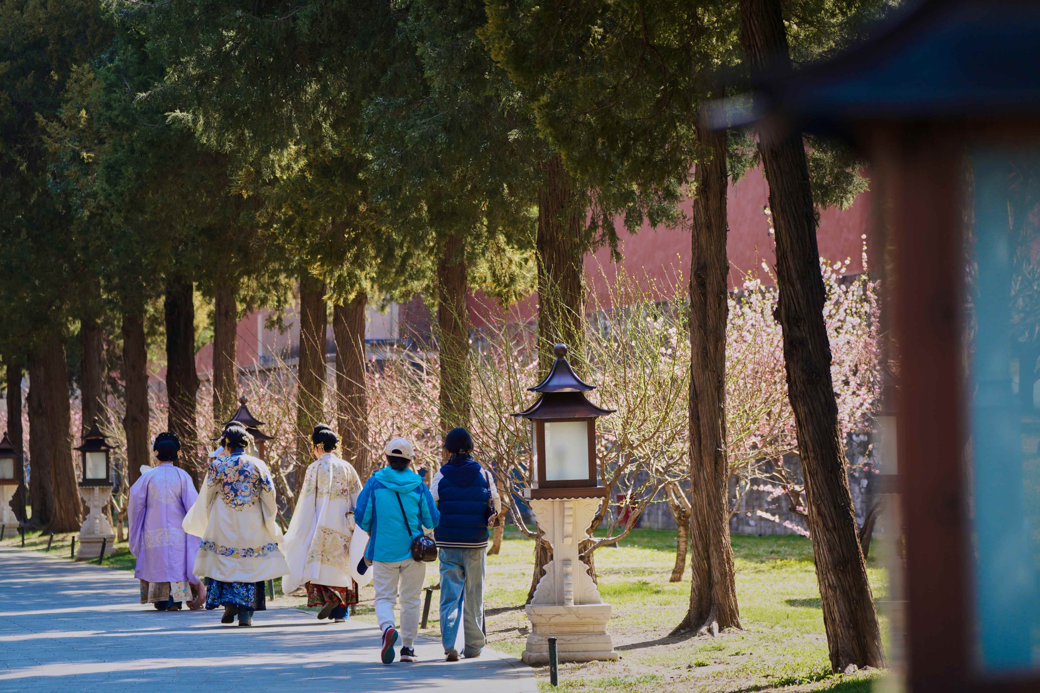 往来游人步履轻盈,或驻足赏花,或举镜定格,框住属于自己的那一角春天。