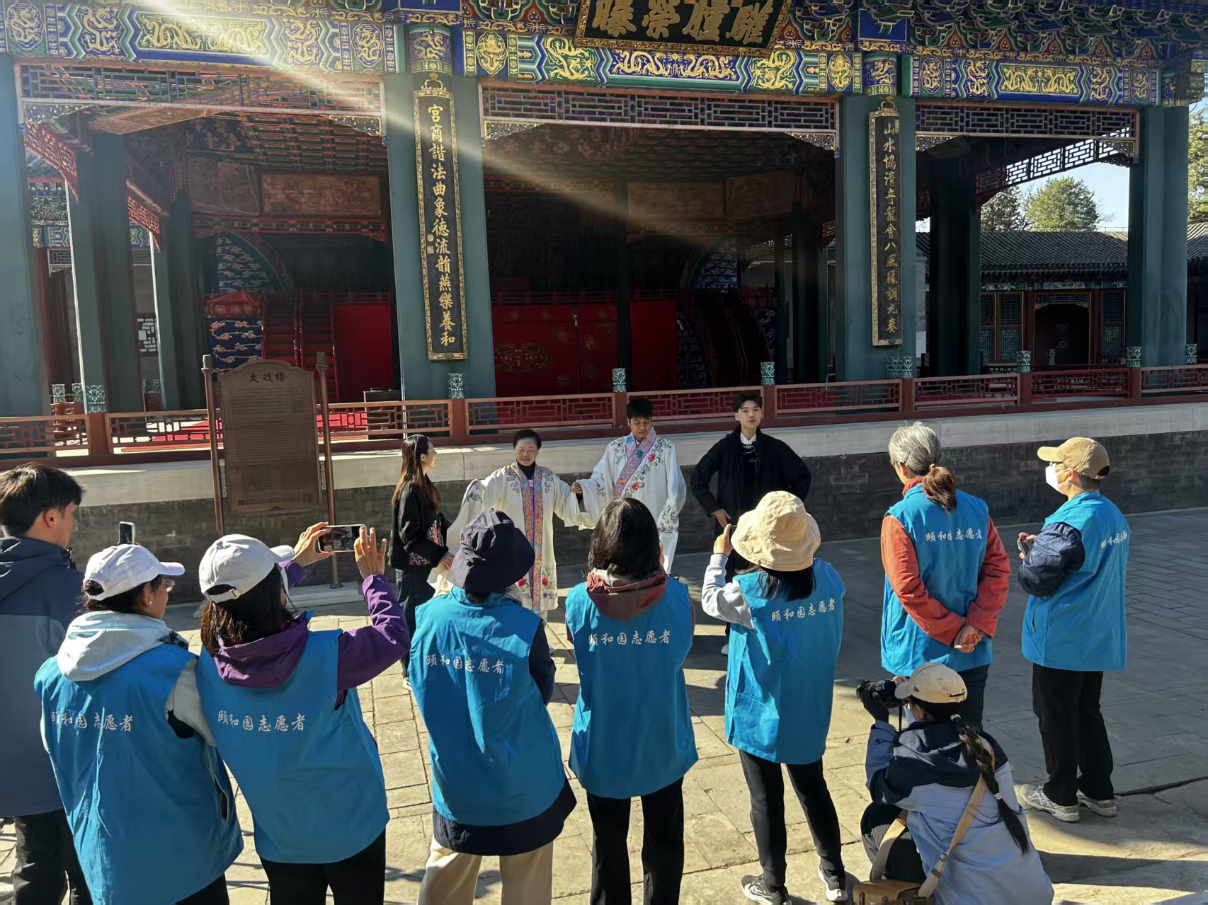 颐和园团员青年代表则在一旁向围观的游客介绍剧目名称、昆曲知识以及德和园与戏曲的历史渊源。不少游客停下脚步,围成一圈静静欣赏,演出结束时报以热烈掌声。