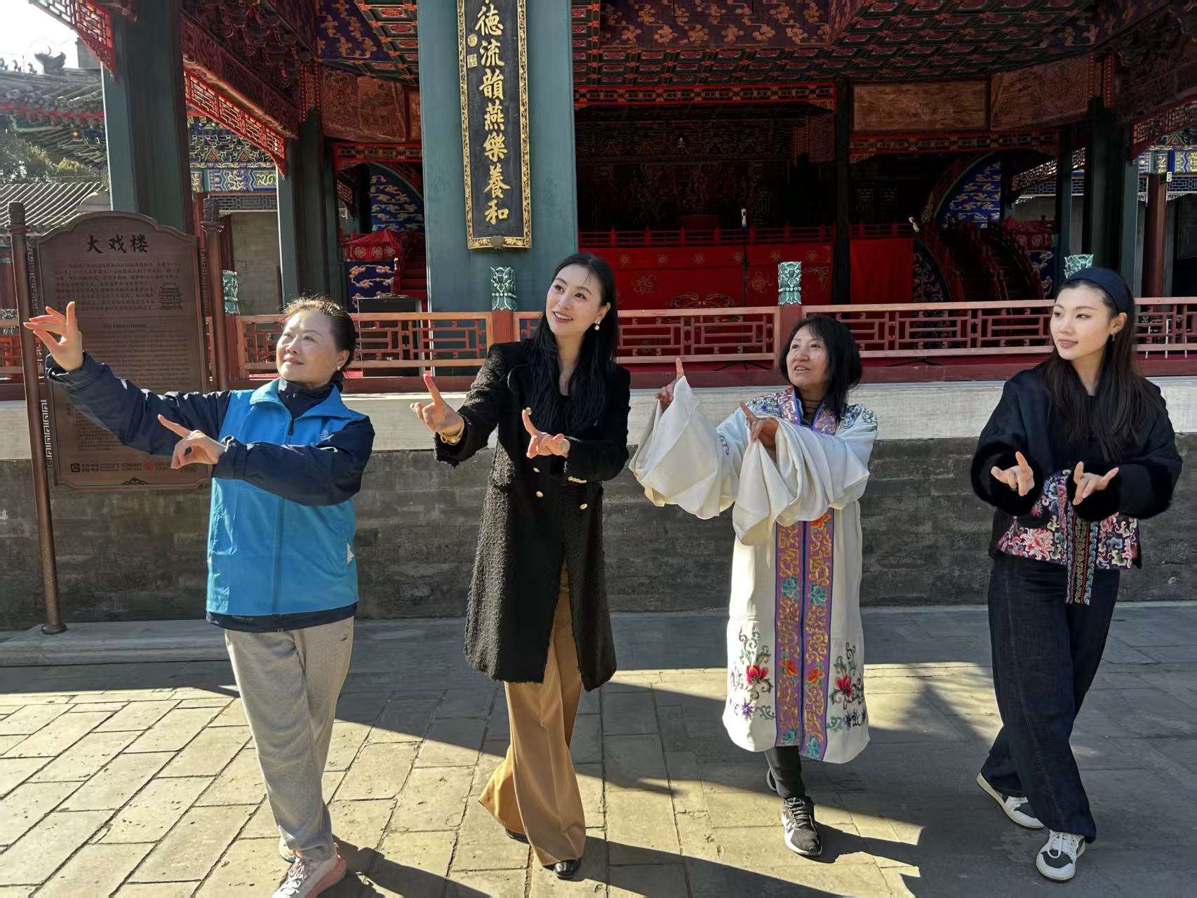 上午德和园刚刚开门,大戏楼上的青年演员已经吸引了不少游客驻足。北方昆曲剧院的青年演员们身着便装搭配简单戏服依次登场,《游园惊梦》《见娘》《玉簪记》等经典选段的清唱声在大戏楼内回荡。这座三层高的大戏楼曾经是清代帝后赏戏之所,飞檐斗拱间承载着百余年的戏曲记忆。颐和园殿堂队讲解员结合大戏楼的历史典故与建筑特色,为游客讲述皇家戏楼与戏曲艺术的渊源。“能在真正的皇家戏楼里听昆曲,感觉特别不一样。”来自江苏的游客张先生举着手机全程录制,“以前在电视里看昆曲,今天在现场听,韵味更足。”