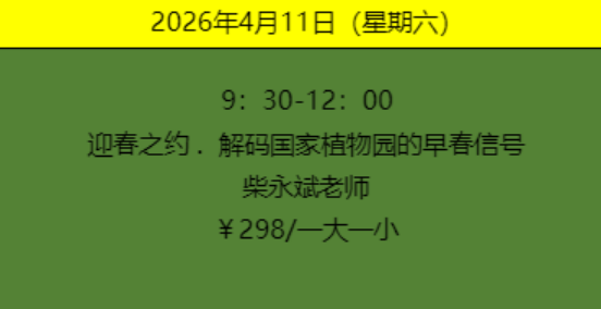 国家植物园“植趣不凡”研学课程——迎春之约·解码国家植物园的早春信号将与大家见面,主讲人柴老师将带领大家一起解密植物的萌发-观测-探索之旅。