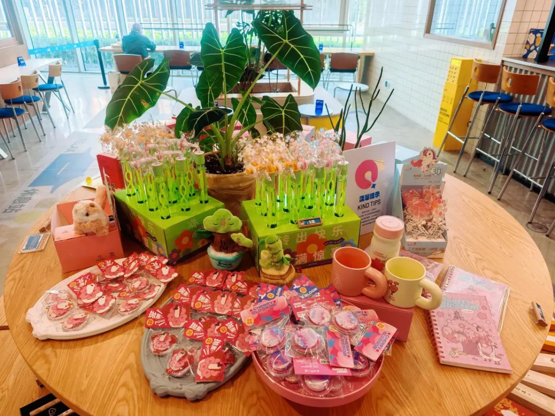 踏入文化中心一层,沉浸式春日美学空间瞬间撞入眼帘,每一处布置都藏着用心。最吸引人的当属楼梯口的春日花卉异形门头,撞色俏皮的各色花朵散发着春日蓬勃的朝气,造型灵动又可爱。抬头便是各种各样的春花悬挂错落,氛围感拉满。脚下也有可爱的花朵地贴一路延伸,每一步都踩出“步步生花”的仪式感。无论你是一个人慢慢逛、还是和朋友结伴打卡拍照、或是牵着孩子的小手走走停停,都能在这里沉浸式感受春日的诗意与治愈。