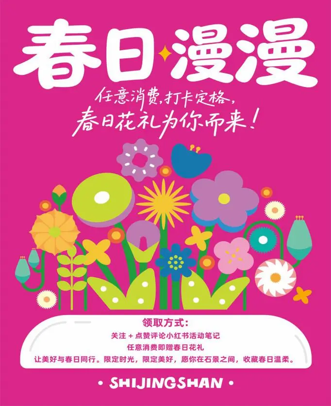 参加“春日漫漫·石景之间”特别活动,还有春日“花礼”为你而来。详情请关注“石景之间”小红书,不要错过这份春天的小惊喜。