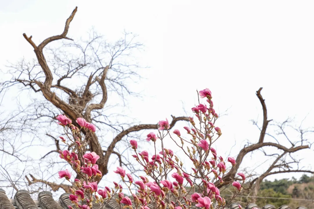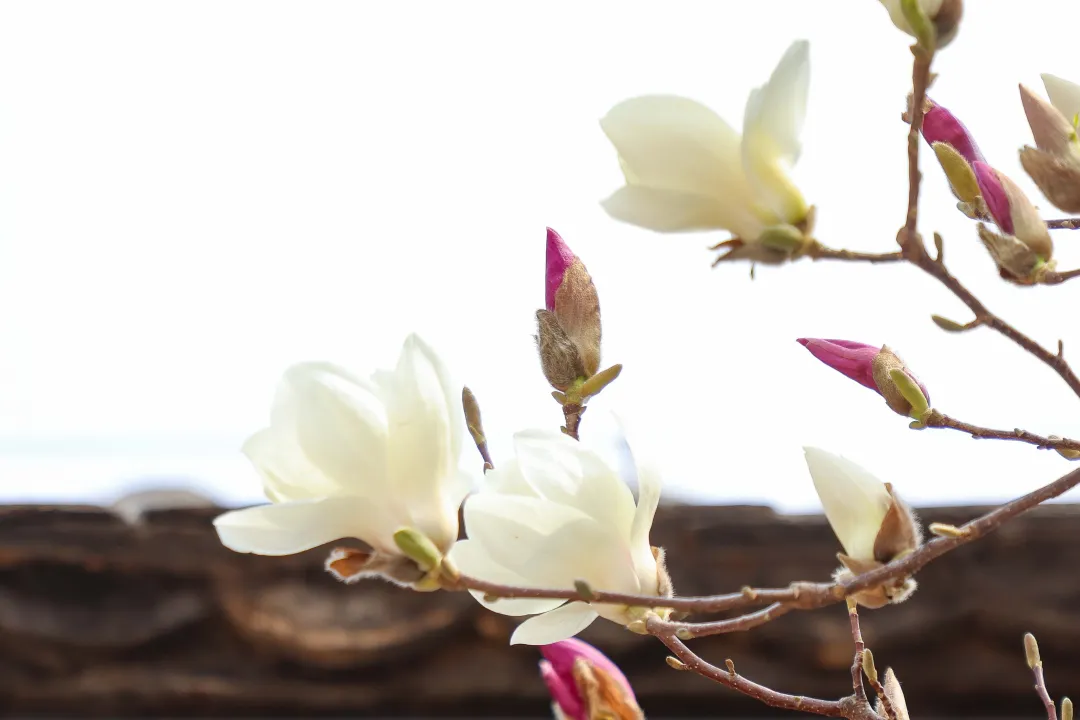 可以看到玉兰盛放、桃花也尚未衰败