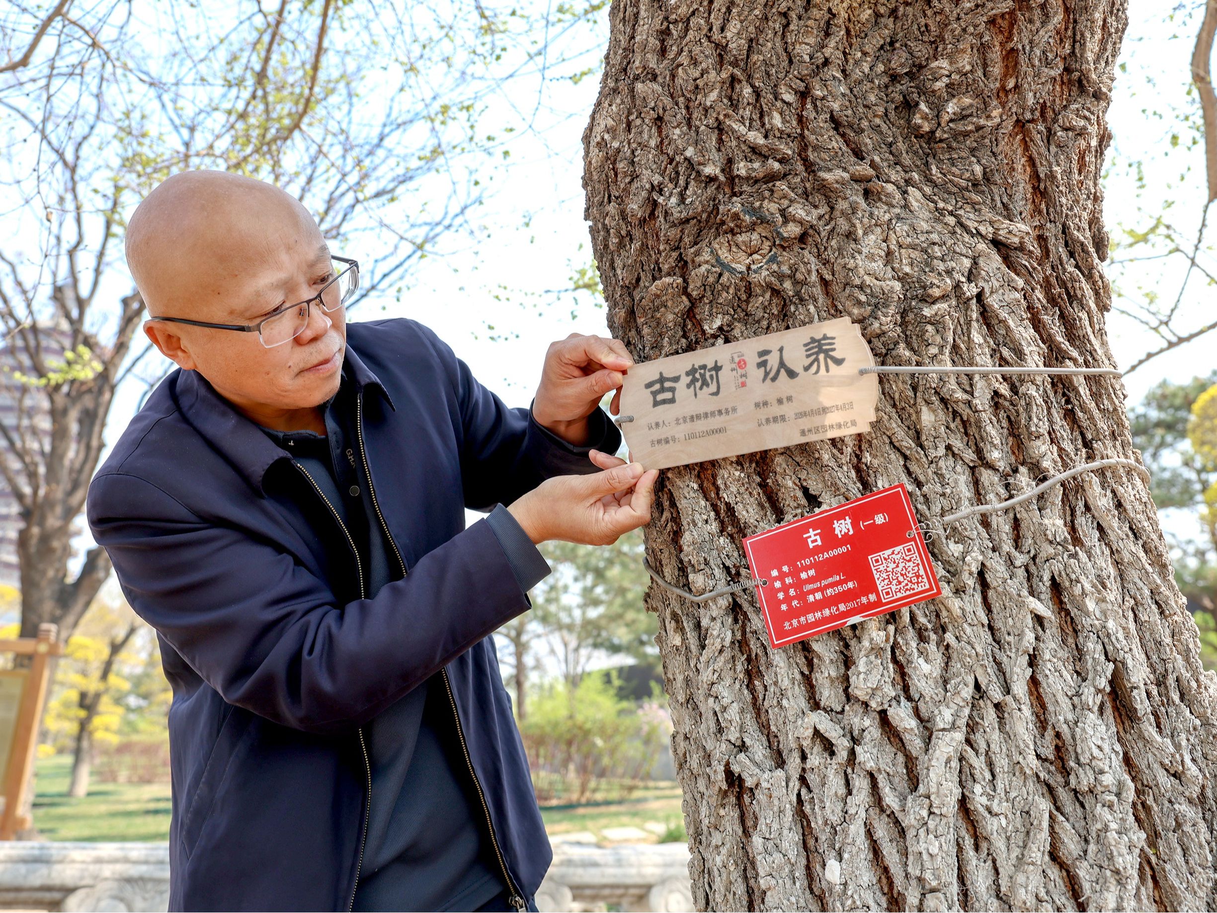 4月4日是第42个首都义务植树日。首都绿化委员会办公室正式启动2026年树木认养,进一步丰富义务植树尽责形式,破解“种树难”问题。认养单位是一家律所,负责人郭晓峰正和工作人员一同,为古树挂铭牌。首都绿化委员会办公室义务植树处处长常祥祯介绍,这是近年来本市首次组织开展全市范围的树木认养活动,16个区及10家市属公园,共遴选推出450株古树名木和1550株优质景观树,供市民自愿认养。详情>>