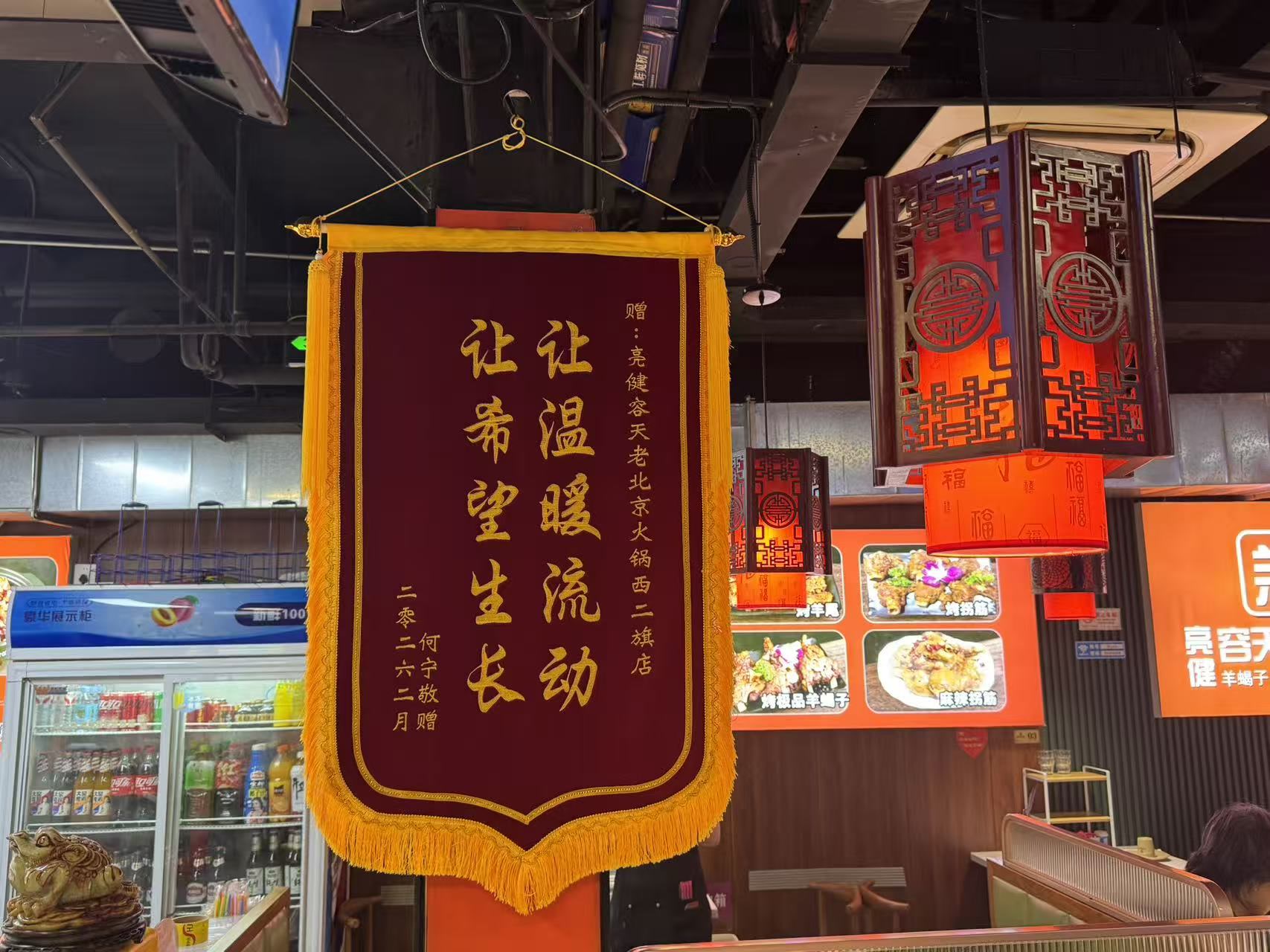 走进亮健容天老北京羊蝎子火锅西二旗店,店两侧悬挂着“齐鲁好男儿”“人民英雄”“舍己救人”等十多幅锦旗和书画作品。随着夜幕降临,店内顾客逐渐增多,不到6时店外已经排起了队。还有的顾客用餐结束后,会在店门外拍照留念。晚上7时30分,一位来自石景山的顾客用餐后将一束花送到前台:“清明了,我们来致敬英雄。”店员杜跃一边接过花束,一边连声道谢:“谢谢你们辛苦过来,还惦记我们这个店,还惦记着老板。”