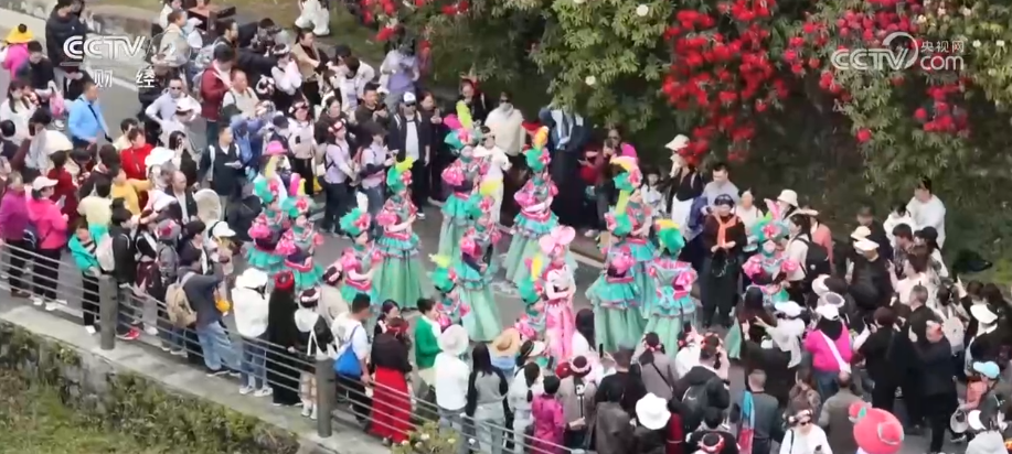 2026年花季,景区打造了多项互动活动,有花仙子巡游表演、“天女散花”高空实景秀等。除了演员表演外,游客也可以亲身参与体验。