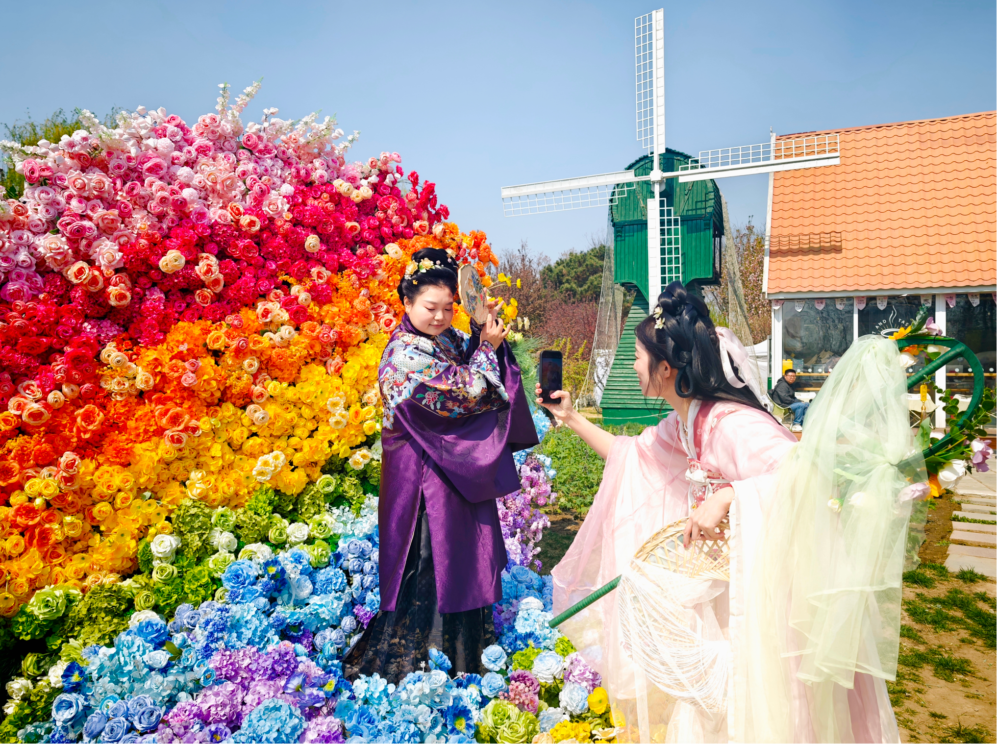 “穿着汉服在花海里走一圈,真的像穿越回了古代。”几位结伴而来的汉服爱好者告诉记者,这样的场景让传统文化不再是书本上的文字,而是“看得见、摸得着、玩得了”的鲜活体验。