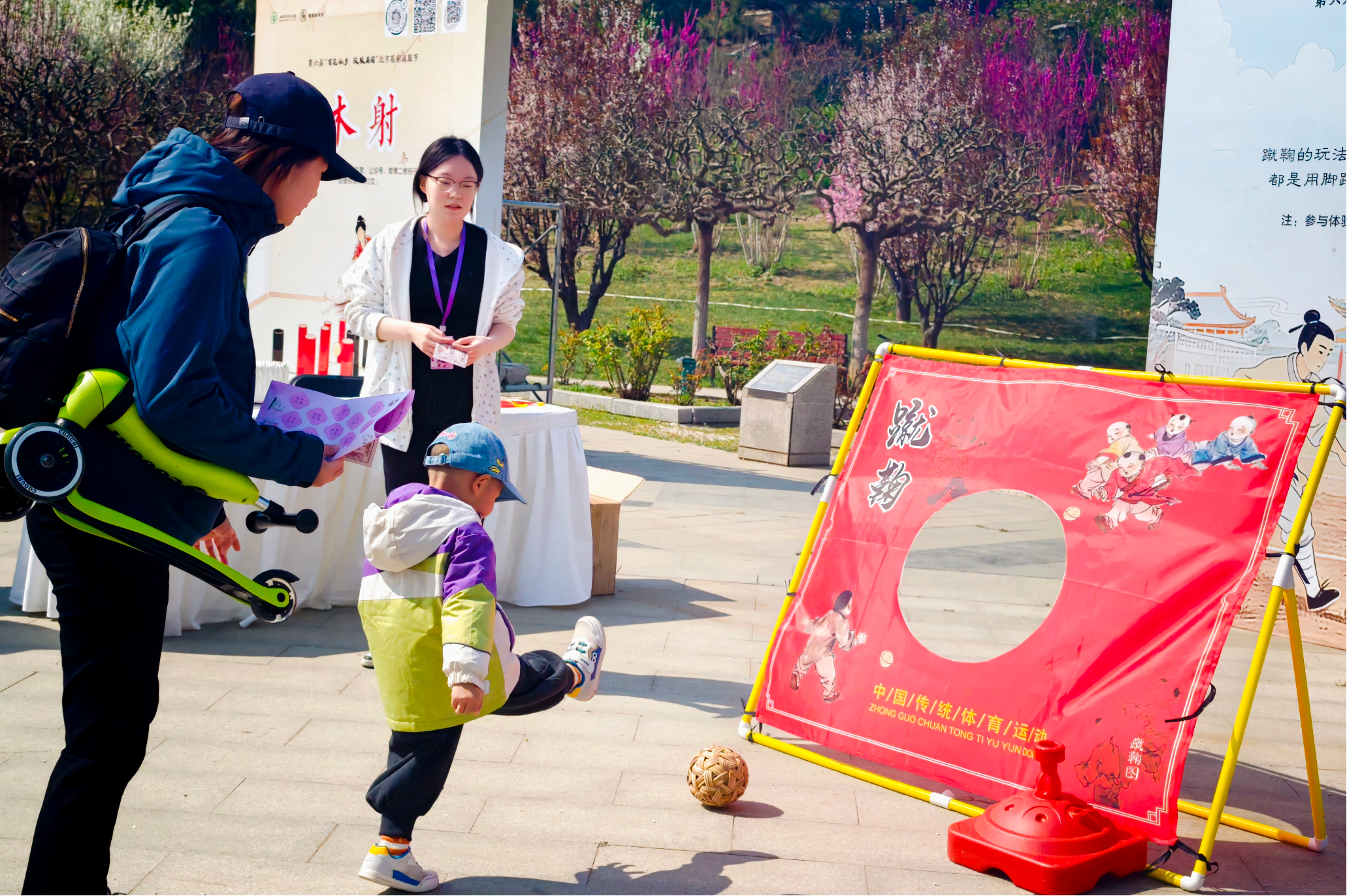 此外,在国风运动会区域,踢毽子、两人三足、抖空竹、蹴鞠、木射、捶丸等项目同样吸引不少游客参与,每个项目都有NPC指导,使不少游客赢得“花币”。