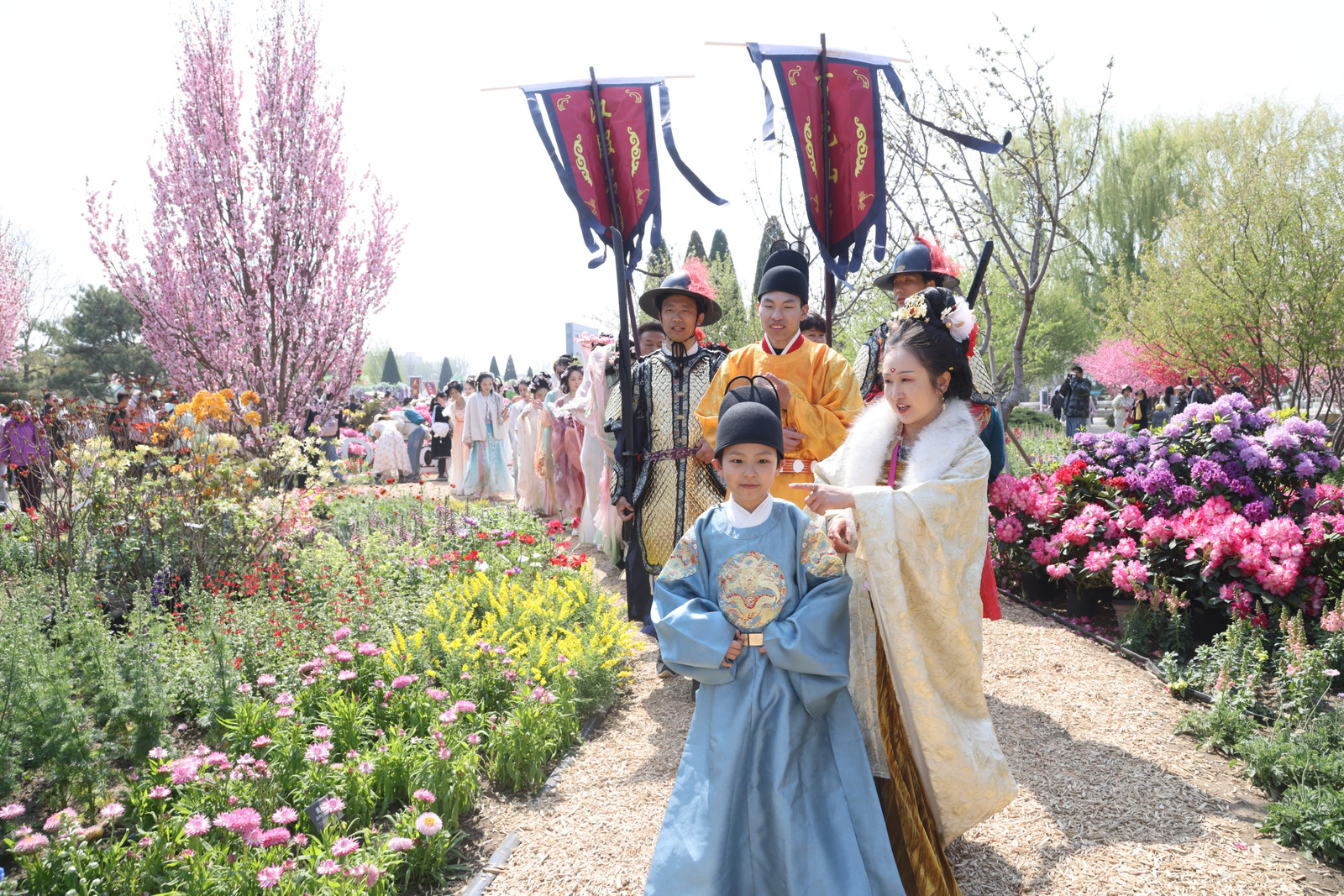 十二花神竞选、汉舞大赛、花神汉服巡游……4月4日,世界花卉大观园里繁花似锦,为期三天的第六届北京花朝汉服文化节如约而至,首日入园近万人。现场不仅有花林、花丛、花景让游客置身百花深处,更推出贯穿全程的沉浸式游戏“花朝令·寻宝记”,让游客在花海中闯关赚币、集章兑礼,体验一场“可穿、可赏、可玩”的传统文化盛宴。