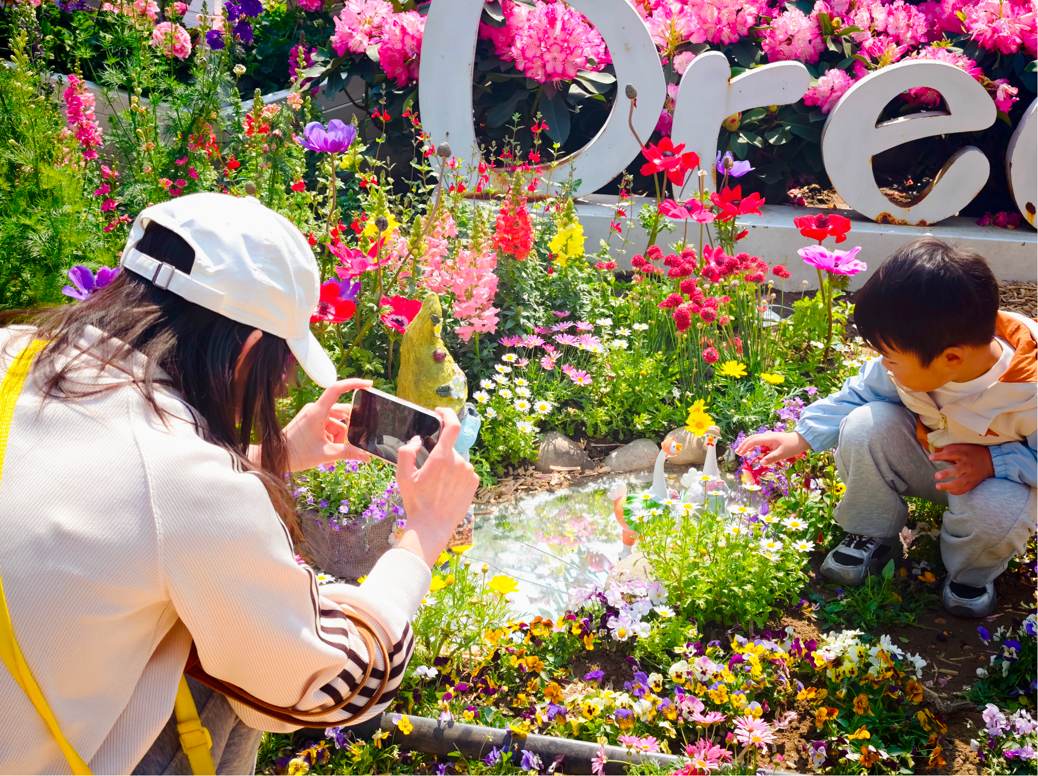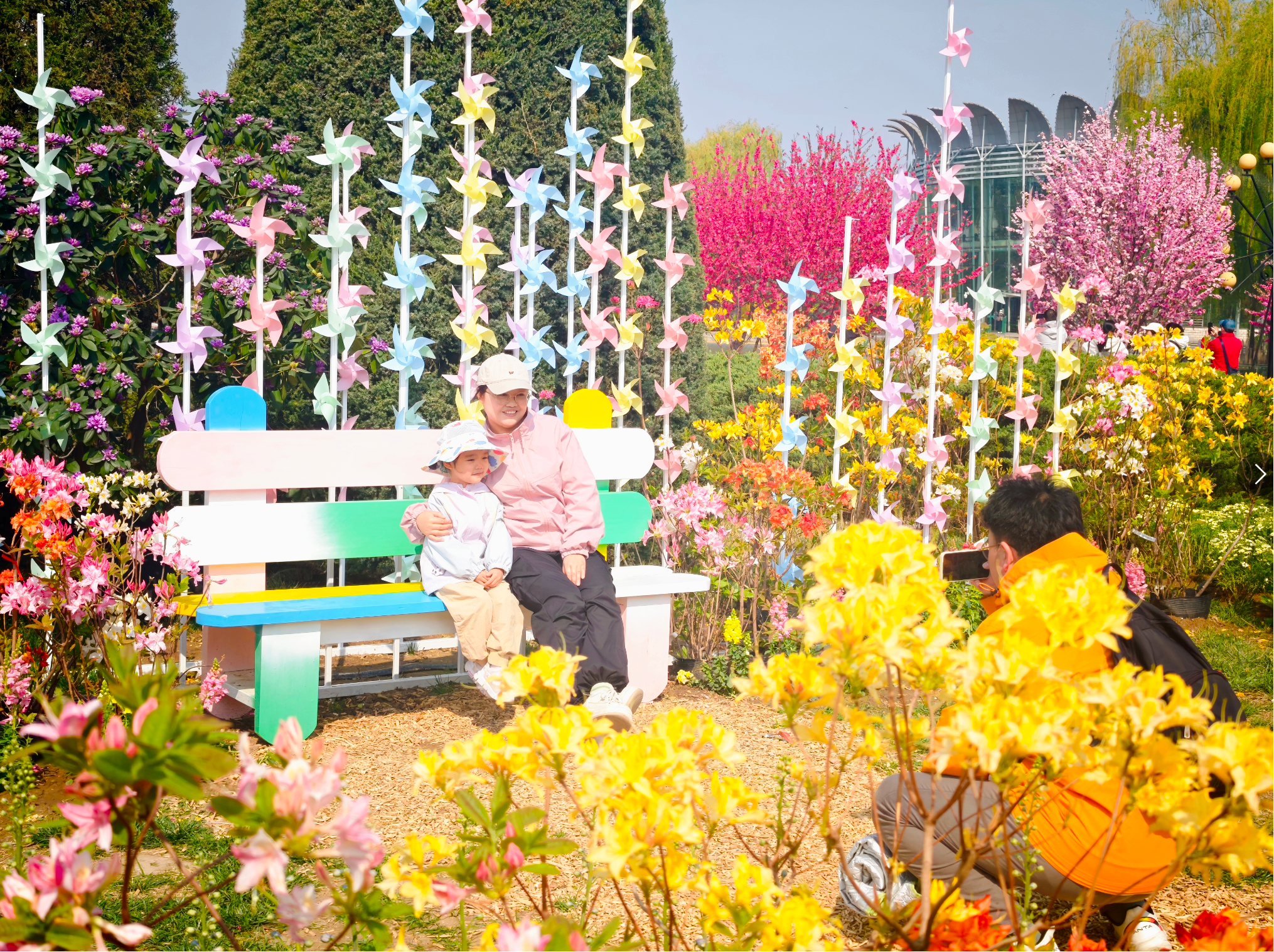 玉兰清雅、山桃粉嫩、梅花傲骨、迎春灿烂……山坡上、丛林间,这份姹紫嫣红让游客仿佛置身于花的海洋,争相打卡拍照。世界花卉大观园同步举办的郁金香文化节,共展出15个品种、15700球郁金香,搭配葡萄风信子、洋水仙点缀其间;天鹅湖东侧的多巴胺花海则云集40个品种的高山杜鹃,搭配20余种高饱和度花卉,形成高低错落的彩色波浪,绚丽缤纷。