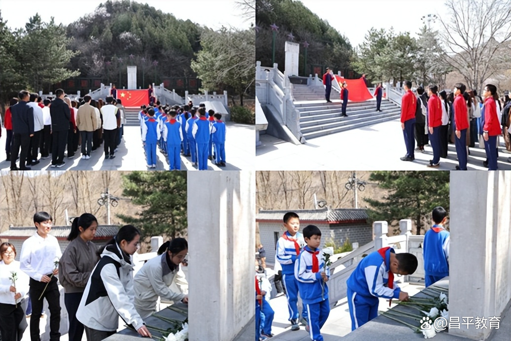 在高崖口革命烈士纪念碑前,各学段师生代表依次敬献鲜花,全体人员齐唱国歌、行注目礼,在苍松翠柏间感悟革命先辈“为有牺牲多壮志,敢教日月换新天”的崇高精神。昌平区狼儿峪红色教育基地沉浸式实景课堂之旅在此开启。