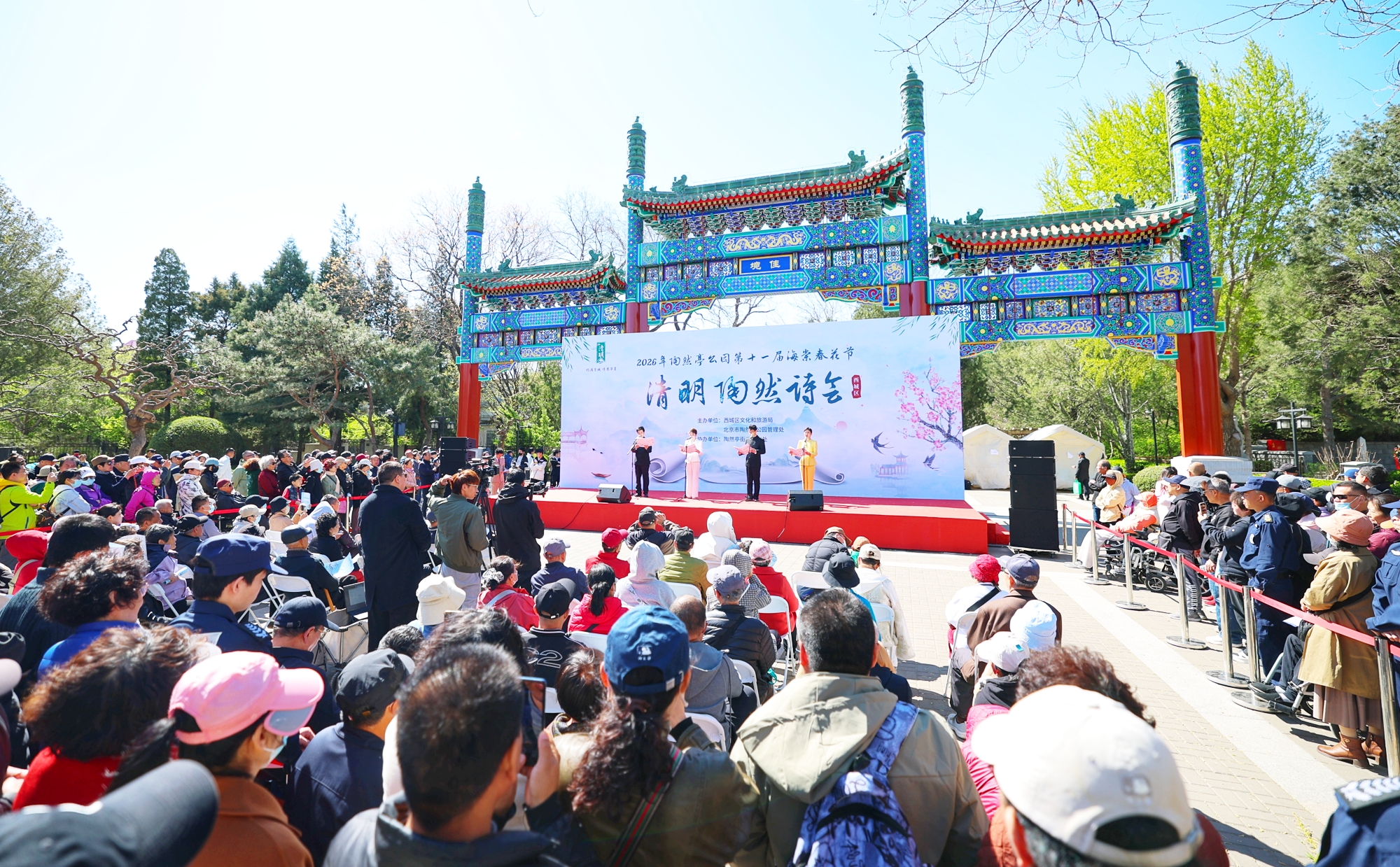 4月5日,2026年西城区清明陶然诗会在陶然亭公园启幕。本次活动由西城区文旅局、陶然亭公园管理处主办,陶然亭街道协办,是第十一届海棠春花节系列活动之一。