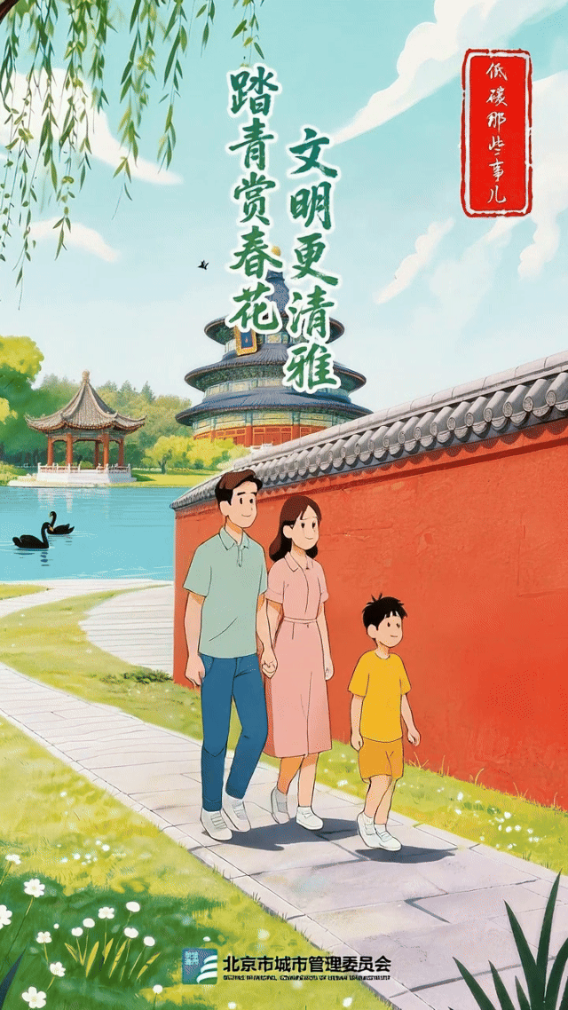 春色漫上心头,看繁花缀满枝头,我们在草木萌动的气息里与清明重逢。此刻的北京是一卷青绿写就的诗行——追思在文明的仪轨里静静沉淀,踏青的脚步轻叩大地,不惊扰一寸新泥。以心祭奠胜过烟火缭绕,以行惜物方见春意长存。