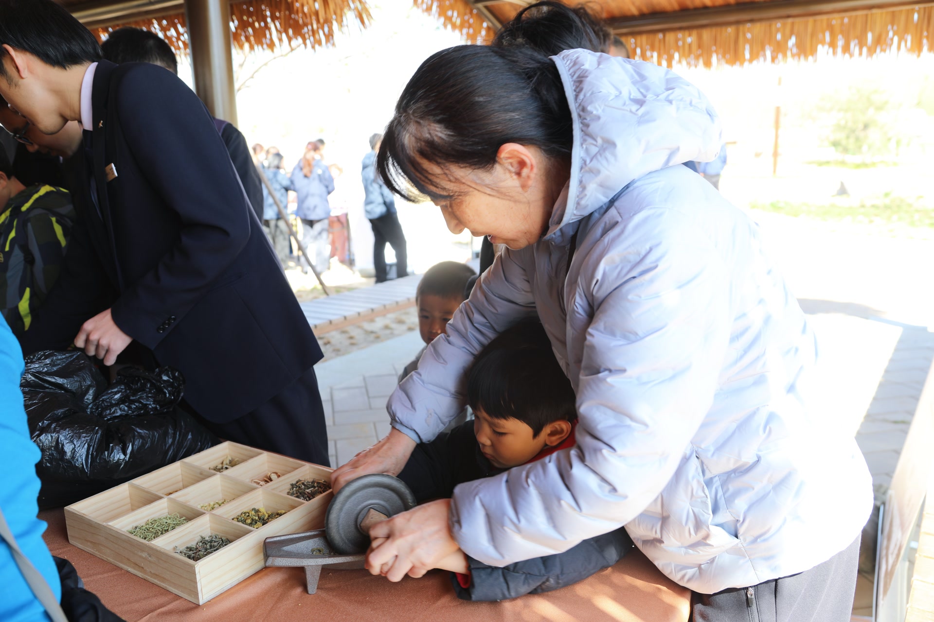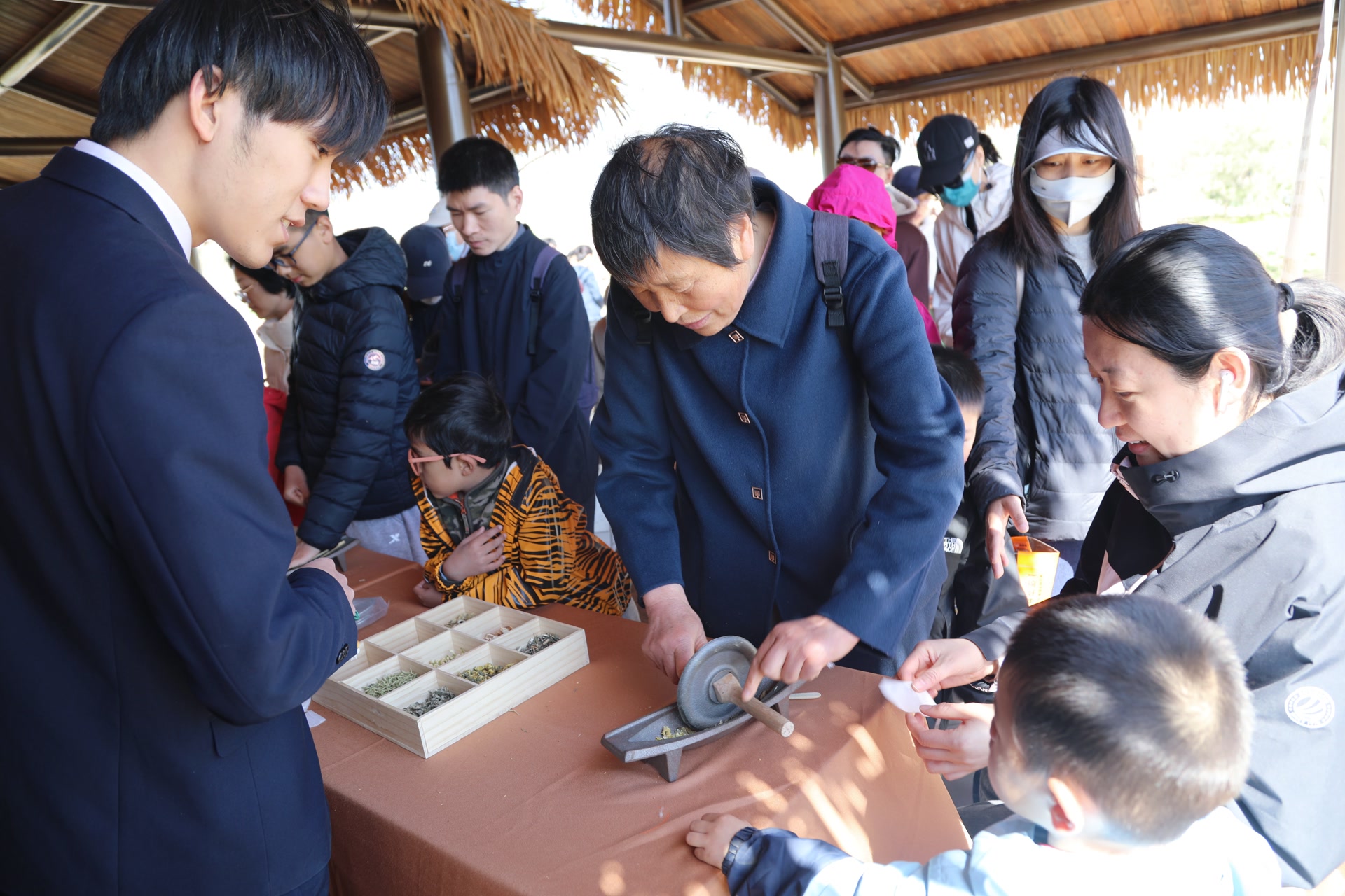 在北园百草名方点景处,参与者循着草木清香,认识园内多种传统本草植物,了解古人对自然的观察与利用,体会汉代 “天人合一” 的生态智慧。用亲手制作香囊,把春日草木气息与汉代本草文化一同留存。