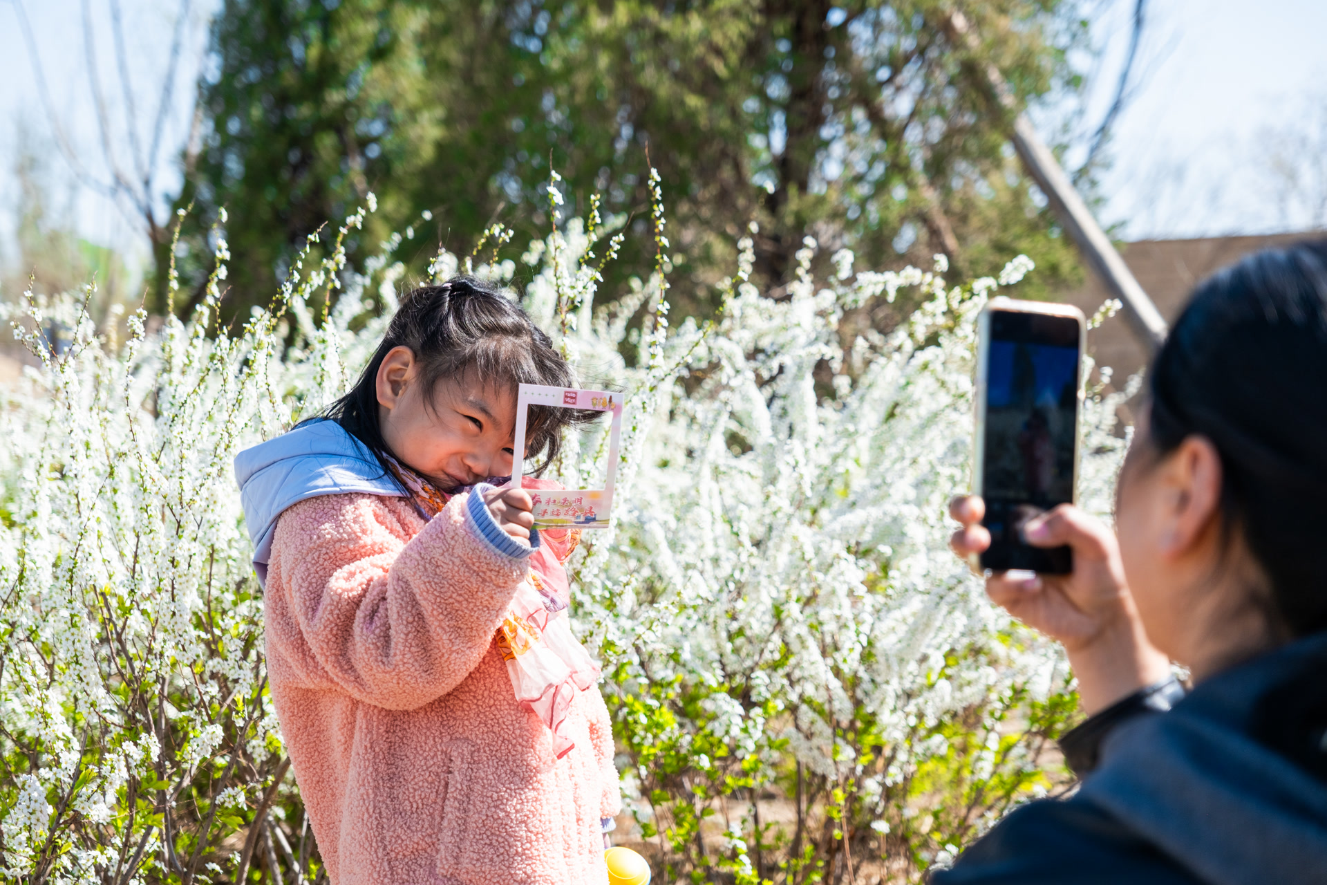园区内,游客手持春日打卡框在花卉旁取景,赏花游园、沉浸式体验春日风光,感受园区的优美景致与文化氛围。