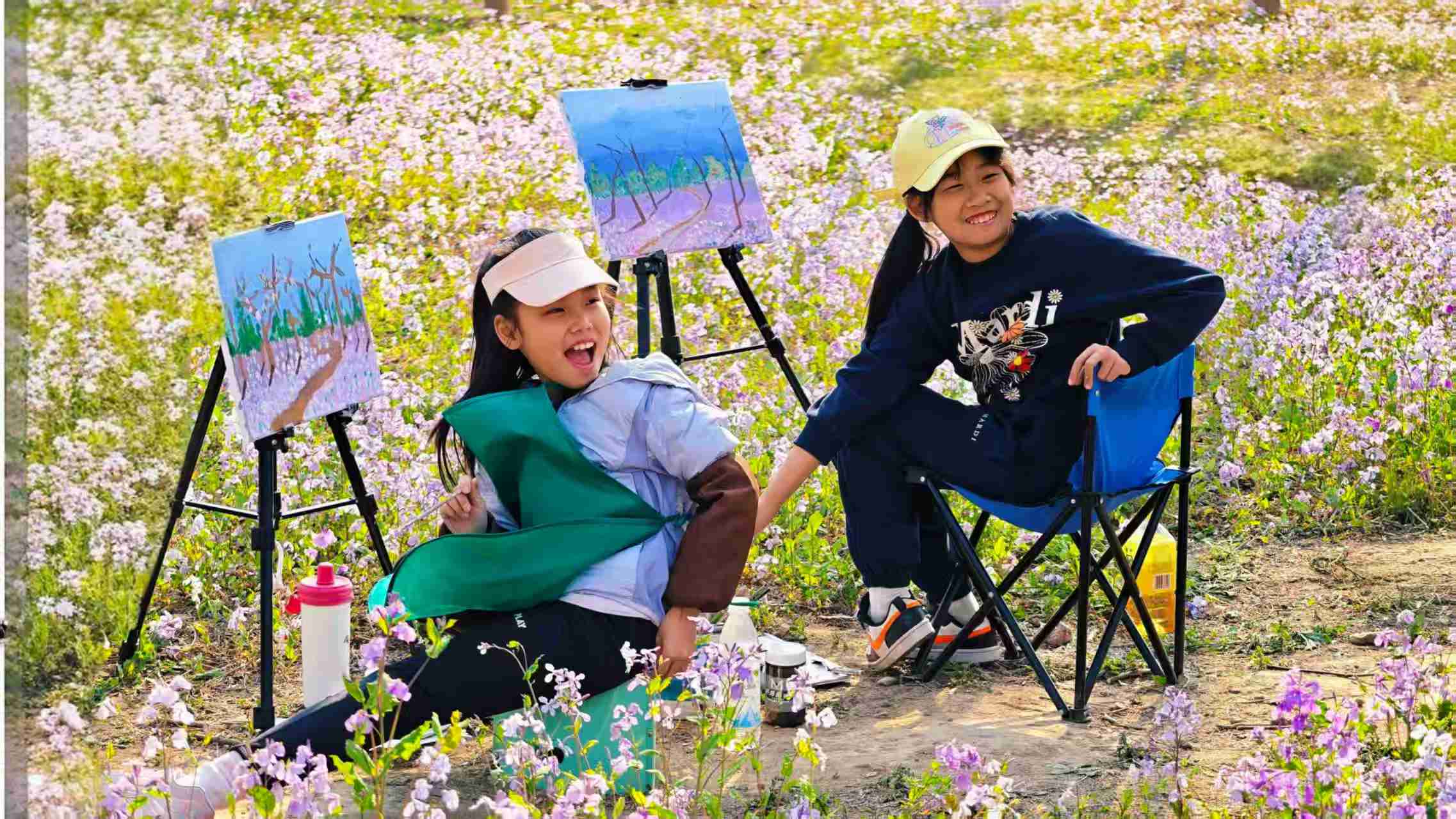 春日郊野,繁花遍野。两名小画家以花田为教室,以画笔为翅膀,在烂漫春光里,把眼中的春天画成了最鲜活的模样。