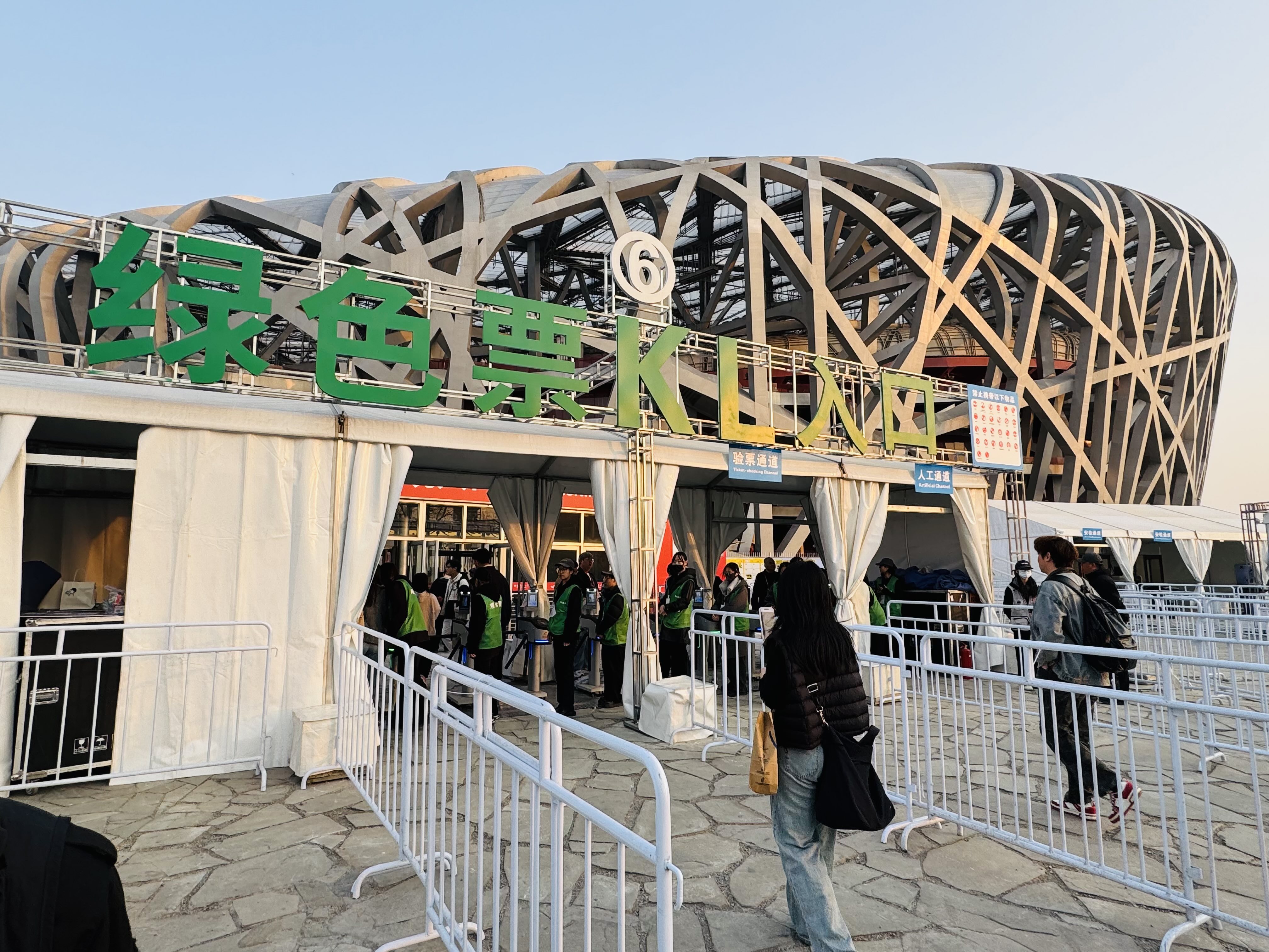 记者了解到,今年以来,北京警方进一步优化升级鸟巢“分区分色”引导入场模式,在去年5个粗检口分色引导的基础上,将8个安检口英文门头标注改为更加直观的数字,并按照票的颜色对应同色标识、门头和志愿者服装。观众根据电子票夹文字和图示,可以从最近地铁出站口直接被引导至具体编号的粗检口、安检口、看台坐席,实现最短路线,最快入场。