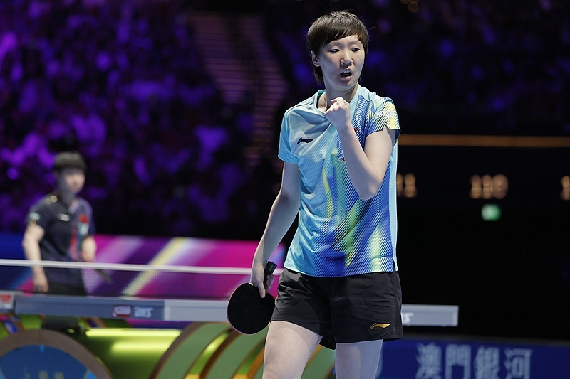 率先进行的女单决赛上演了一场“中国德比”,世界排名第一的孙颖莎以4比1击败世界排名第二的王曼昱,赛事重启以来连续三届战胜队友封后。