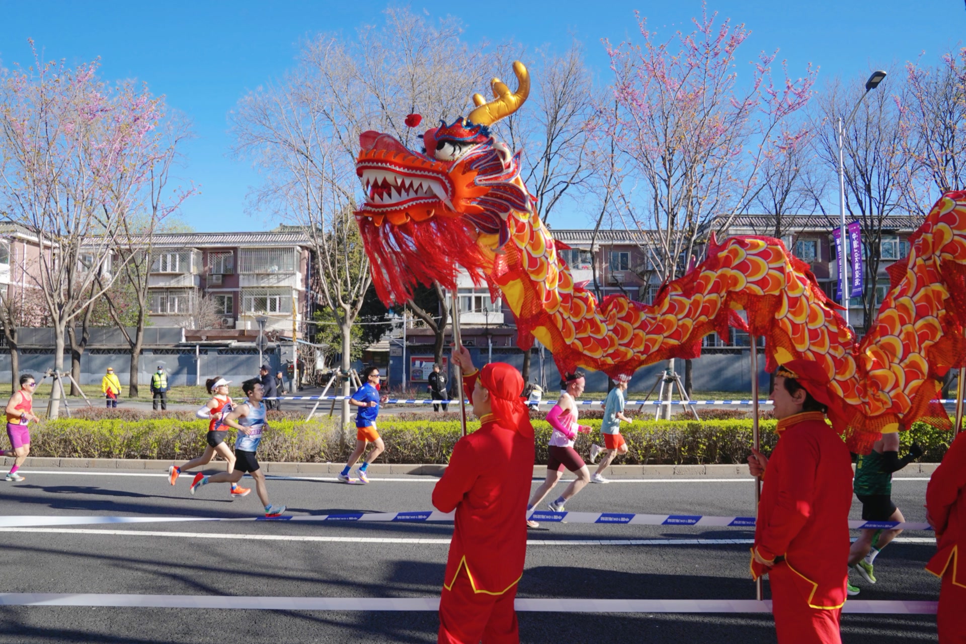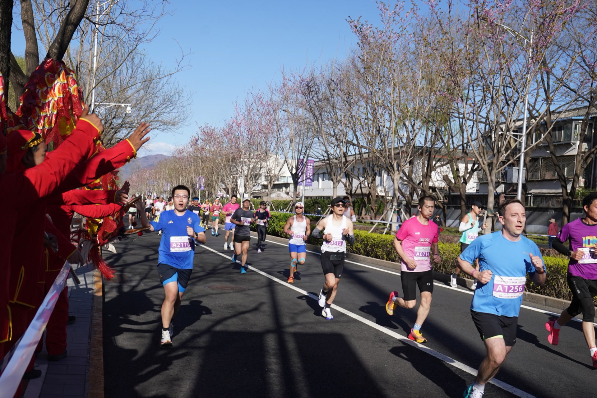 从新建宫门路到颐和园,向南转上昆明湖东路,一路向南,跑上蓝靛厂北路,到长春桥折返……沿线或是桃红柳绿,或是碧波荡漾,还有舞龙舞狮等民俗表演,宛若奔跑在画中。